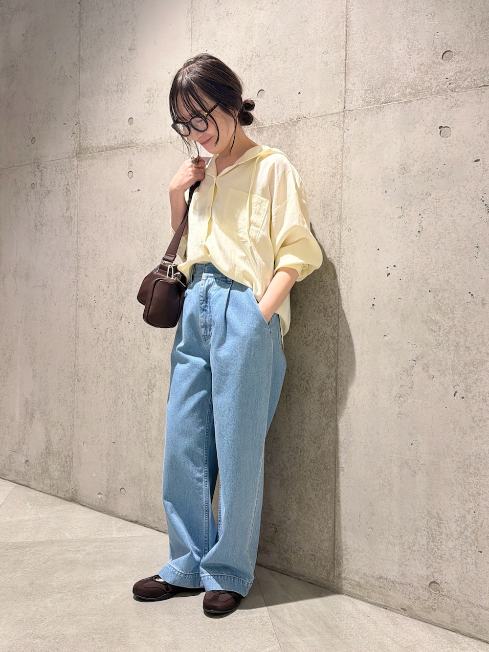 今回は、ワイドデニムパンツとシンプルに合わせた、カジュアルコーディネート。
