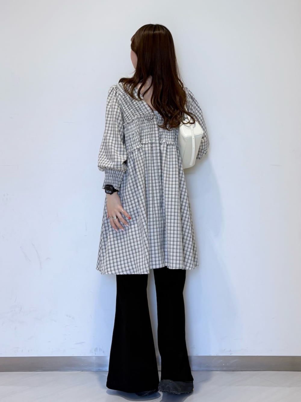 KBF2WAYシャーリングチェックミニワンピース- カラー: