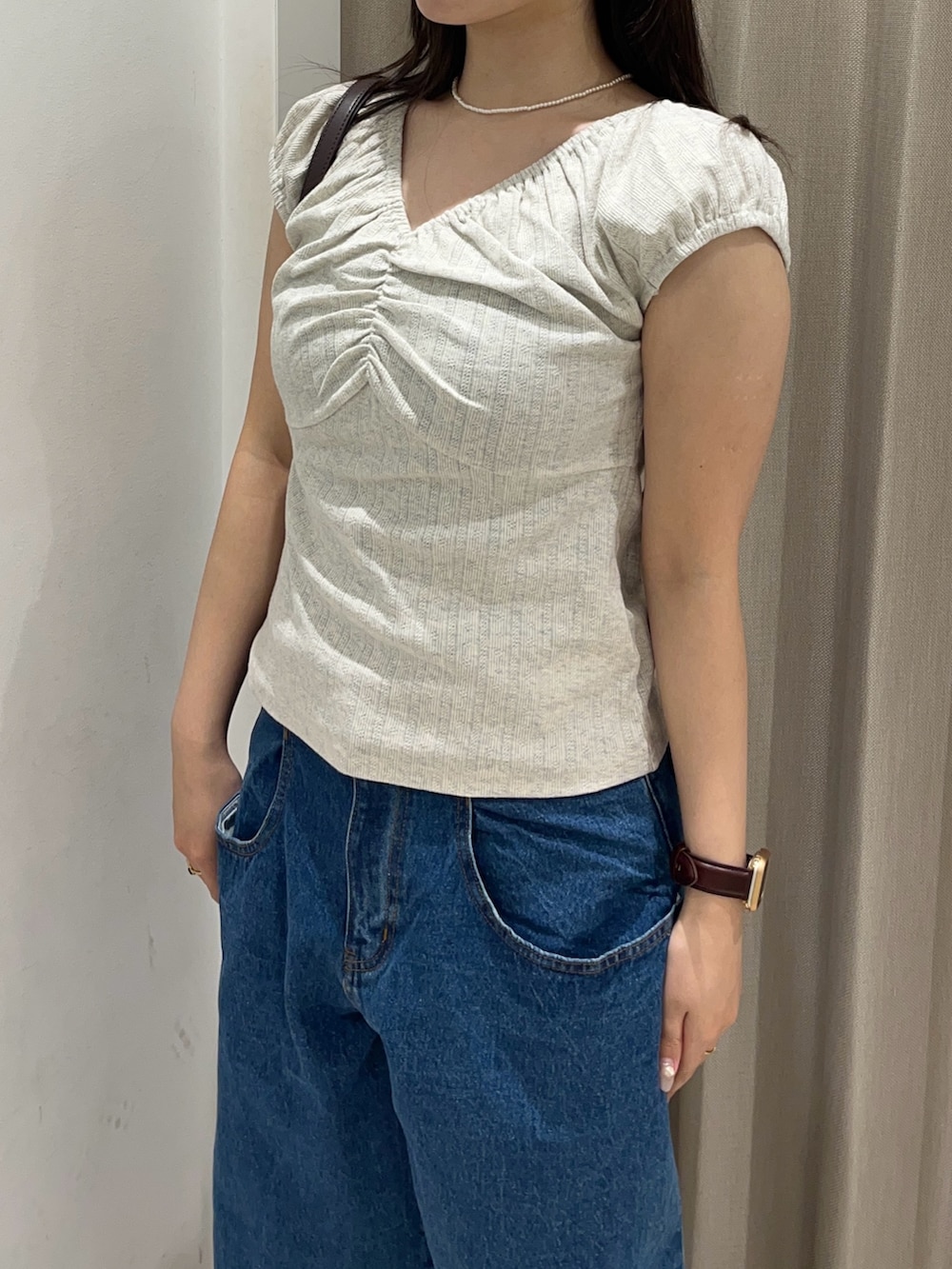 新作のトップスはVネックのラインがとても綺麗なデザイン。肩周りまでしっかりカバーできるので骨格ストレートさん、ナチュラルさんも着やすい春夏トップスです🙆♀️