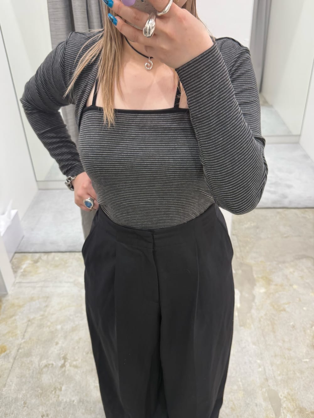ずっと気になっていたボレロセットのトップスをリアルバイ!今日の店頭コーデです💖ピタッと感はありますが、伸縮性よく着心地もいいのもおすすめです!