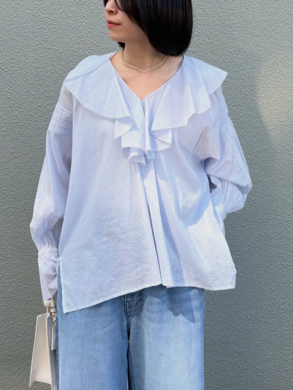 デニムやチノパンなどのカジュアルなワイドパンツと合わせたミックススタイルはもちろん、きれいめなワイドスラックスを合わせた大人っぽい着こなしもおすすめ。袖口を少したくし上げて手首を見せることで、より抜け感のある洗練されたスタイリングが完成します。