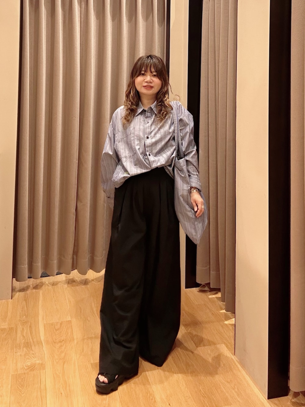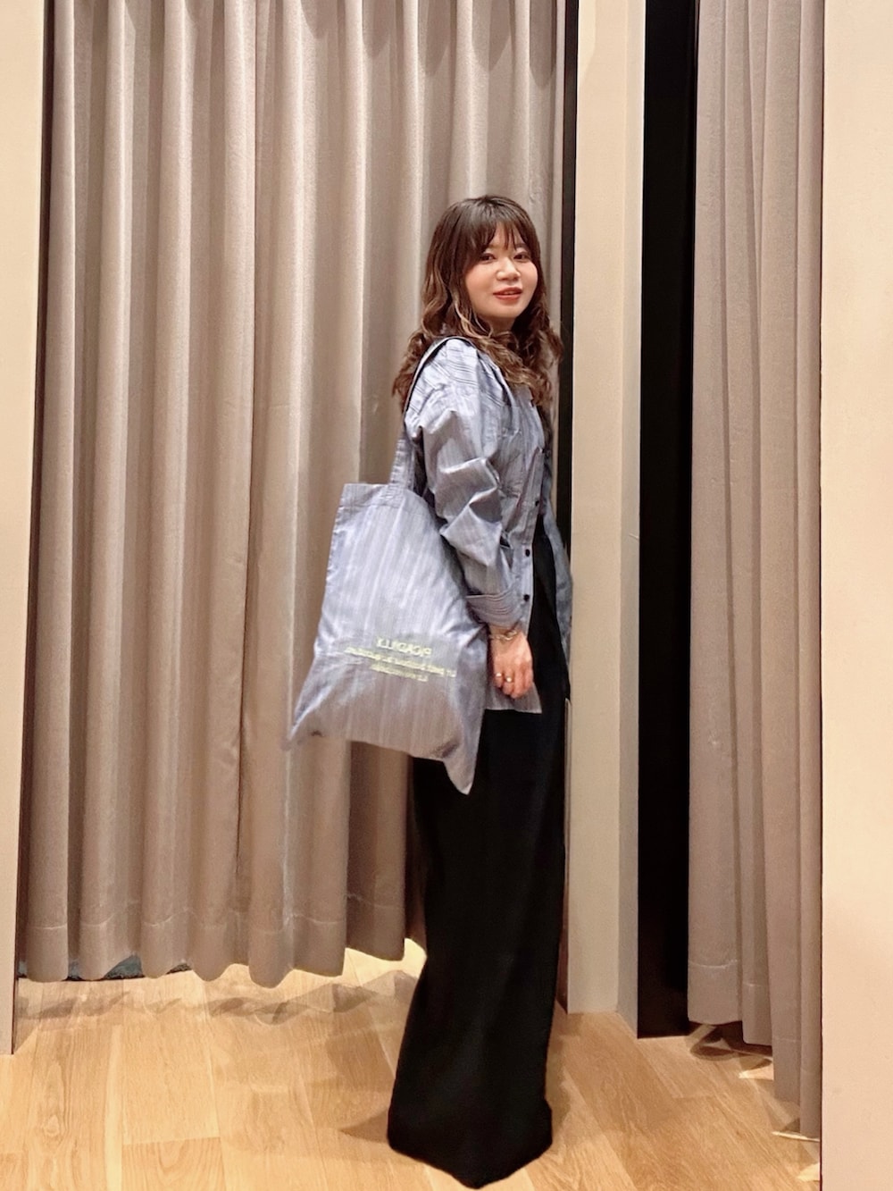 ボトムスはウエストゴムのワイドシルエット⭕️