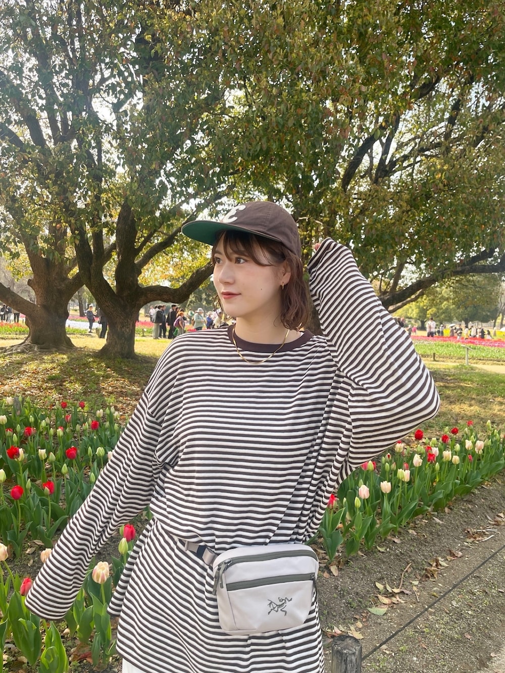 ウエストポーチでウエストマークつけてスタイルアップ⤴️