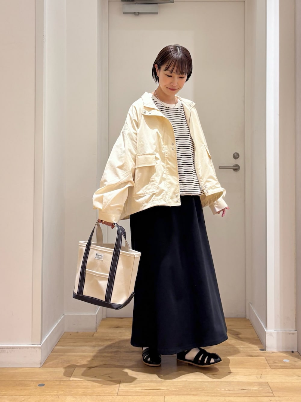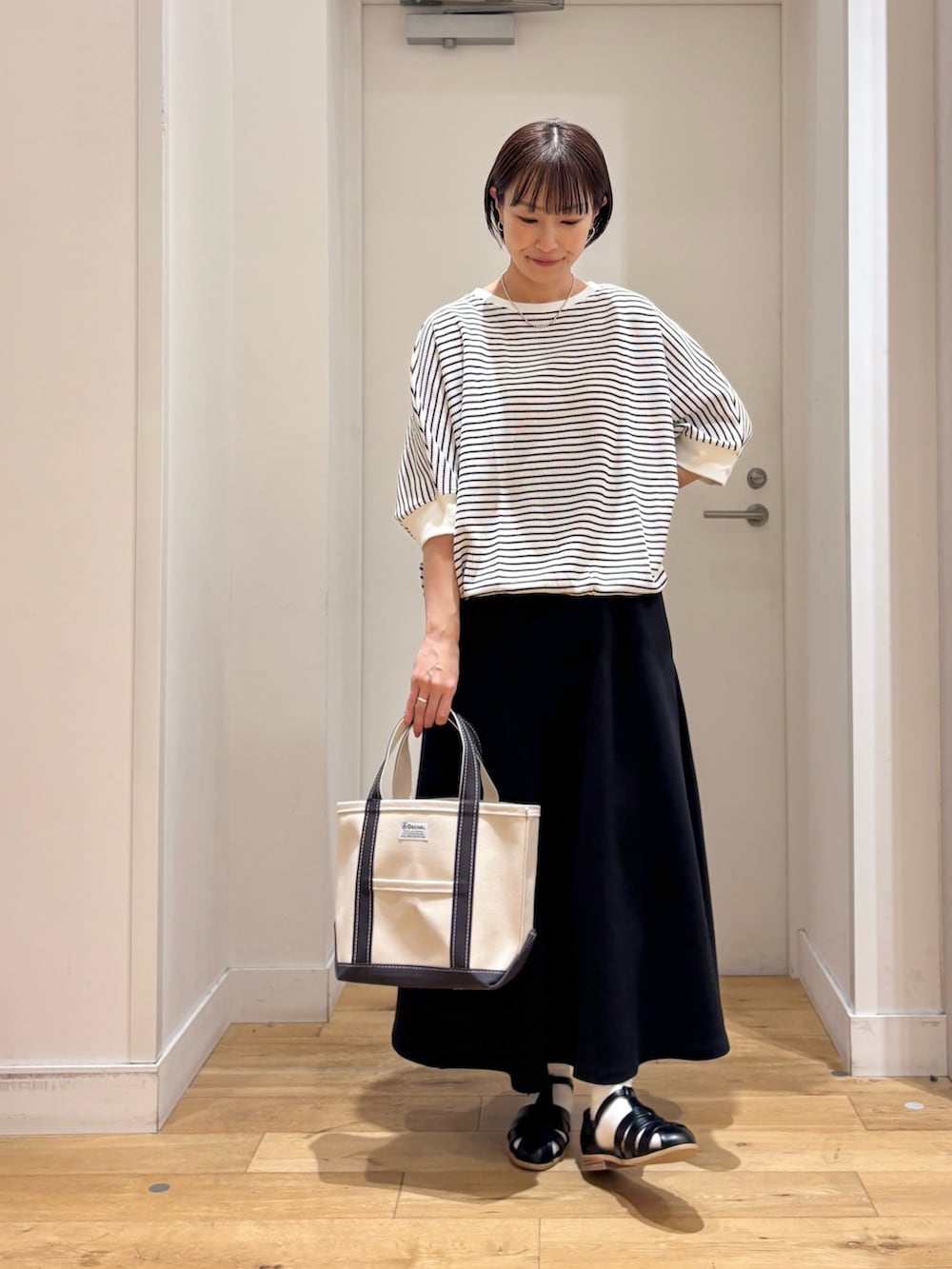 インナーに合わせたボーダーのトップスは、柔らかい肌触りやゆったりシルエットでとても楽な着心地◎