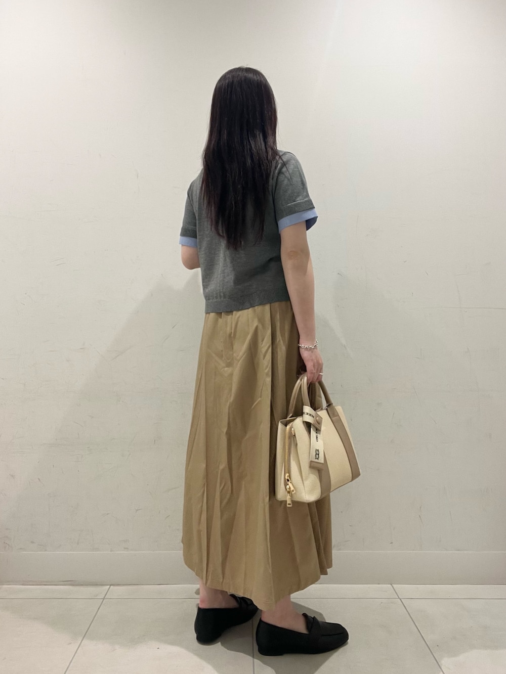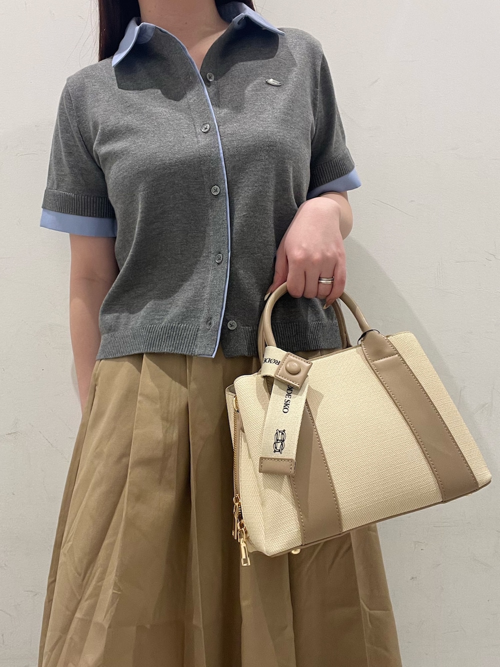 新作の人気ドッキングカーデと張り感のあるスカート合わせで細見え◎!!