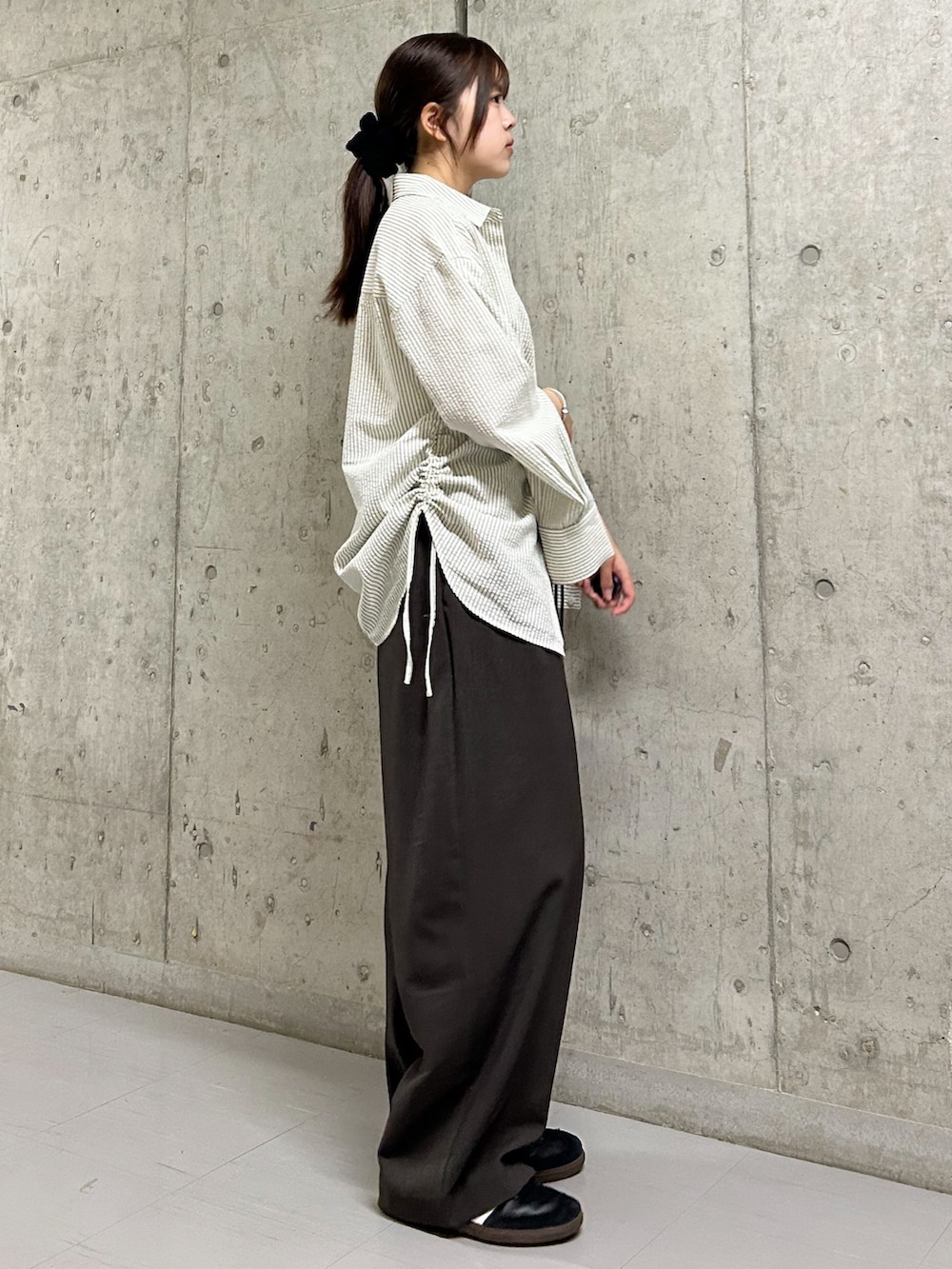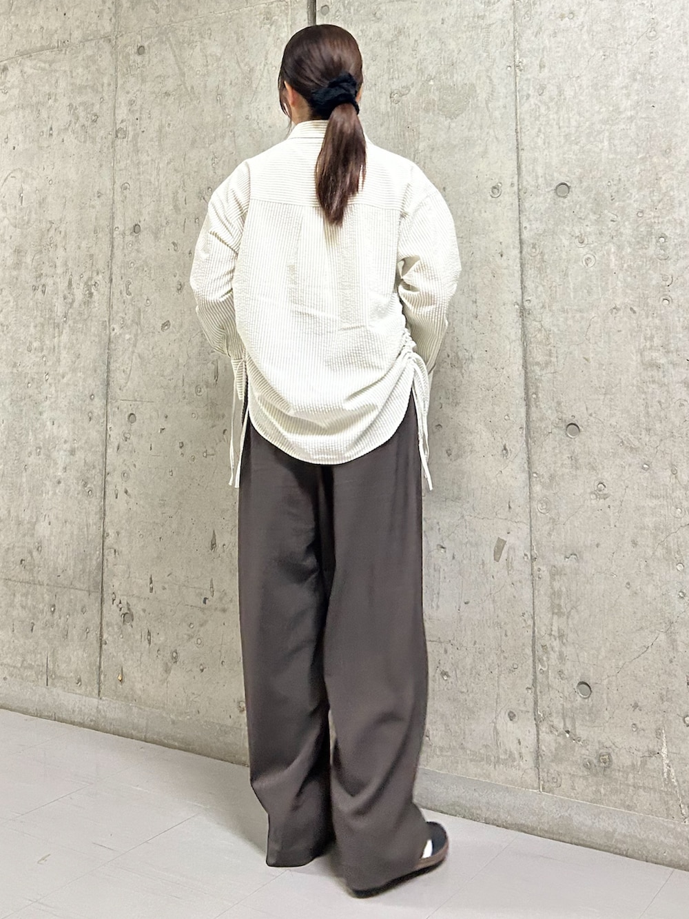 トップスのシャツはポコポコとした素材でとっても可愛いです✨
