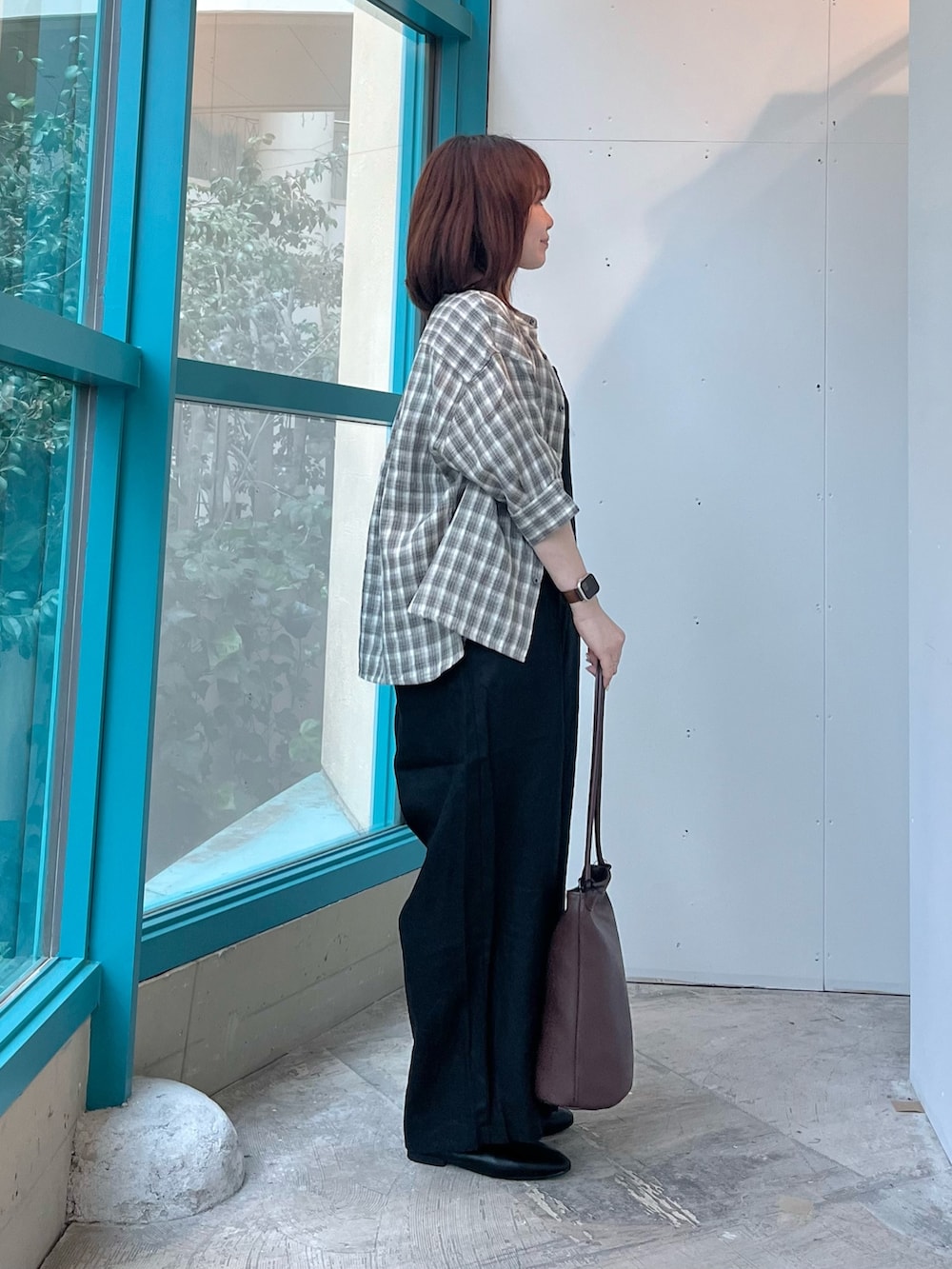 落ち着いた色合いのチェックなので、通勤にも使いやすいです。