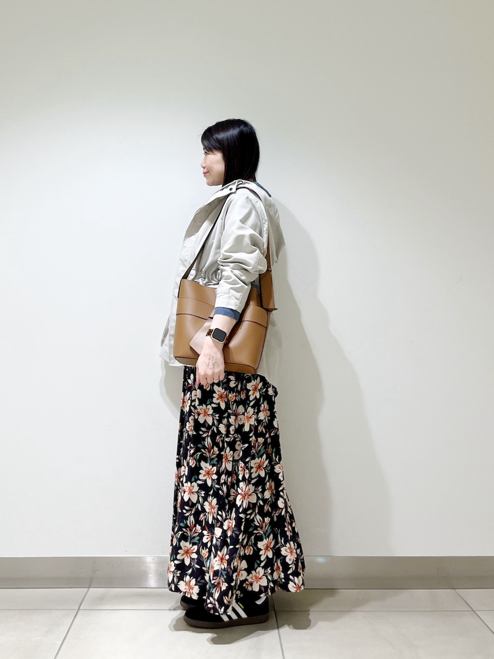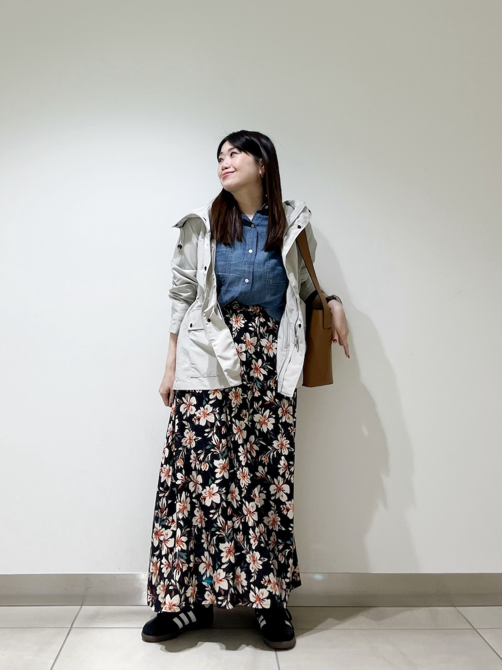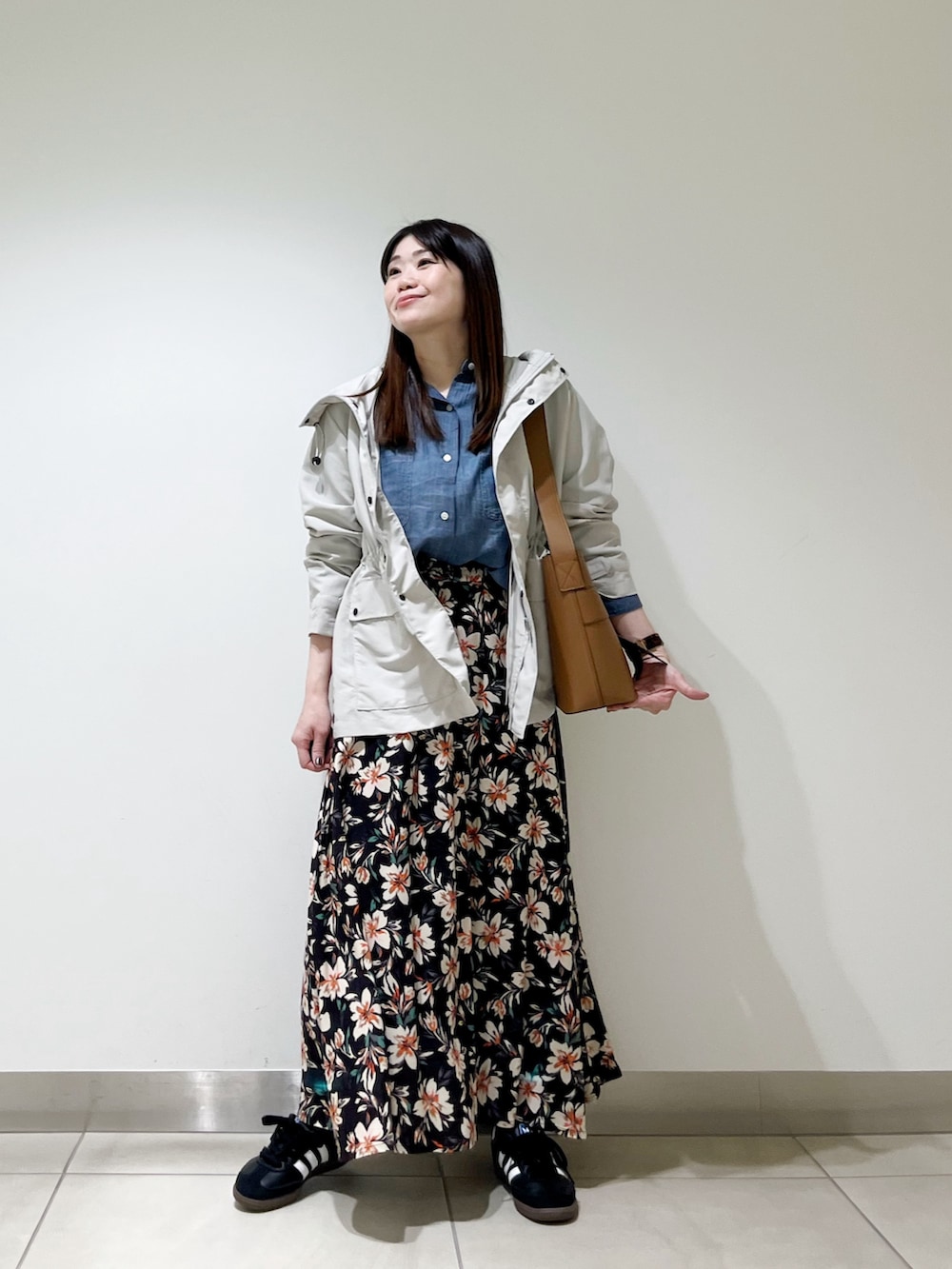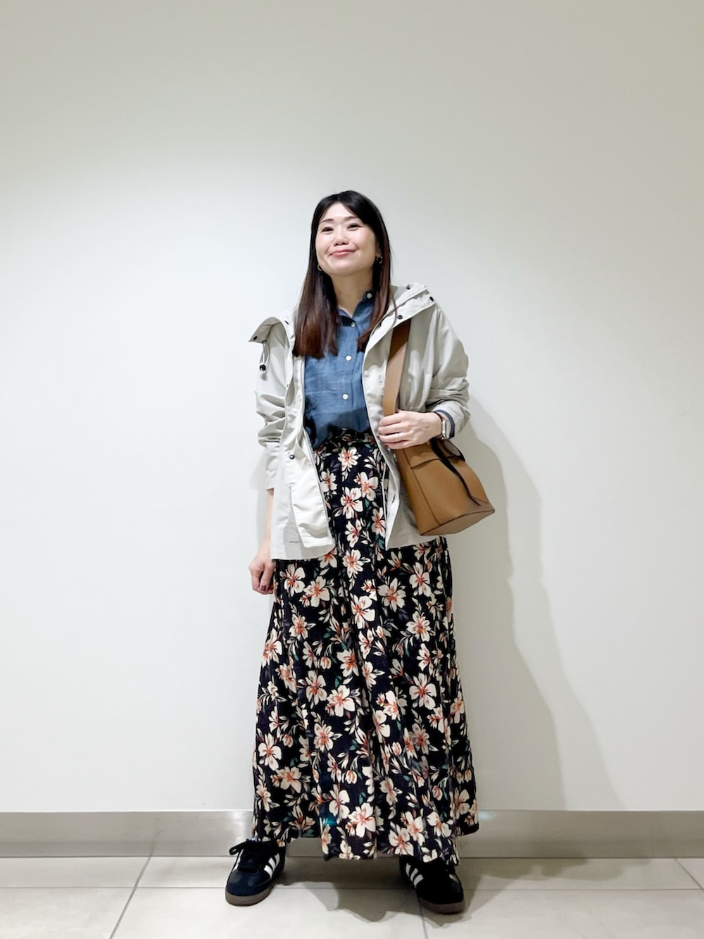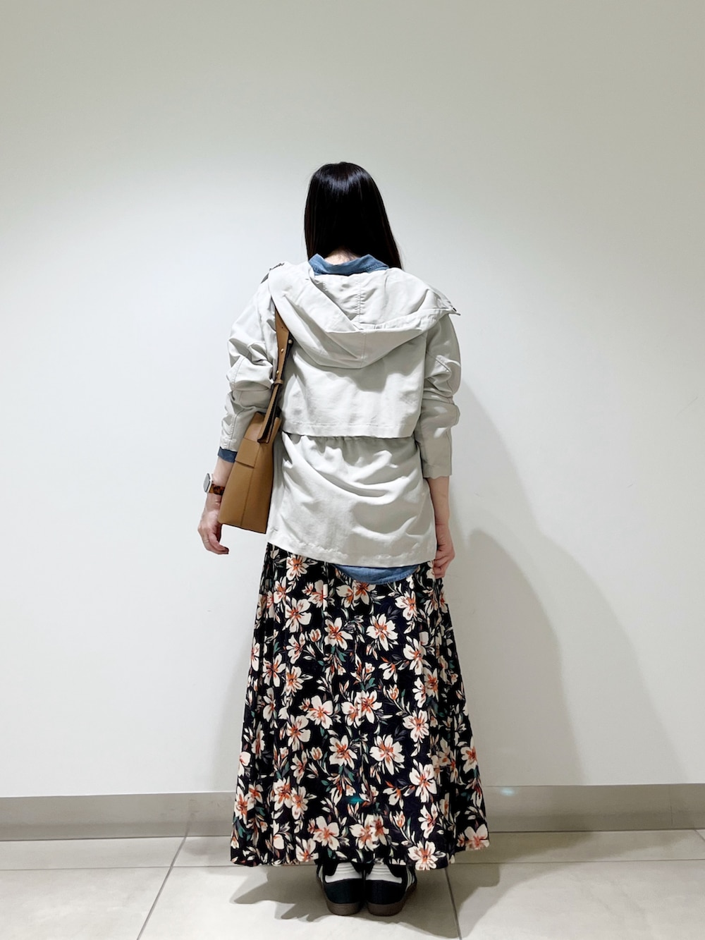 フラワー柄がかわいく目を惹くスカートを主役にしました☆