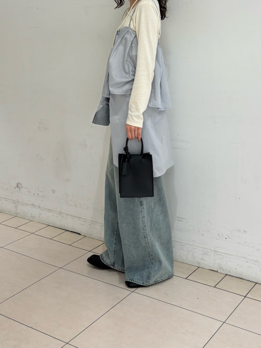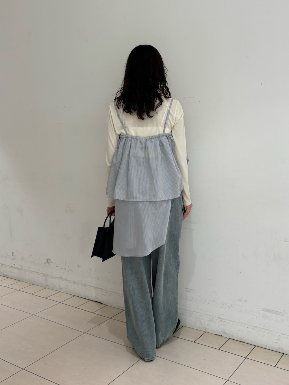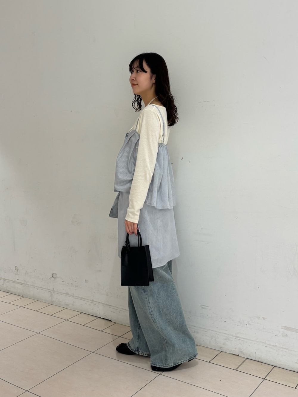 大人気のスカートビスチェSETシャツを少しアレンジを効かせて着てみました!