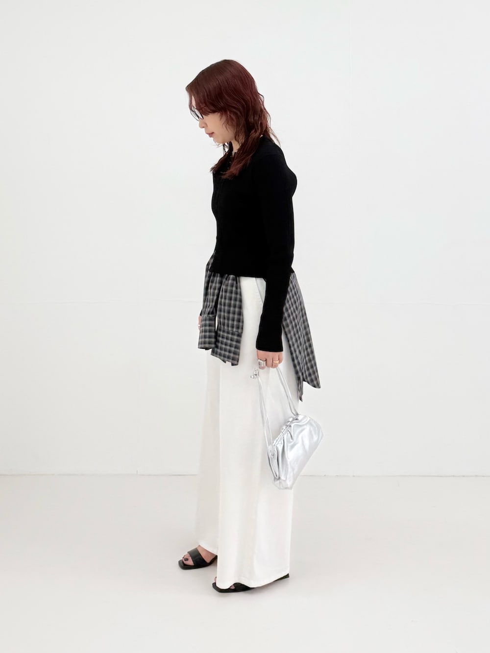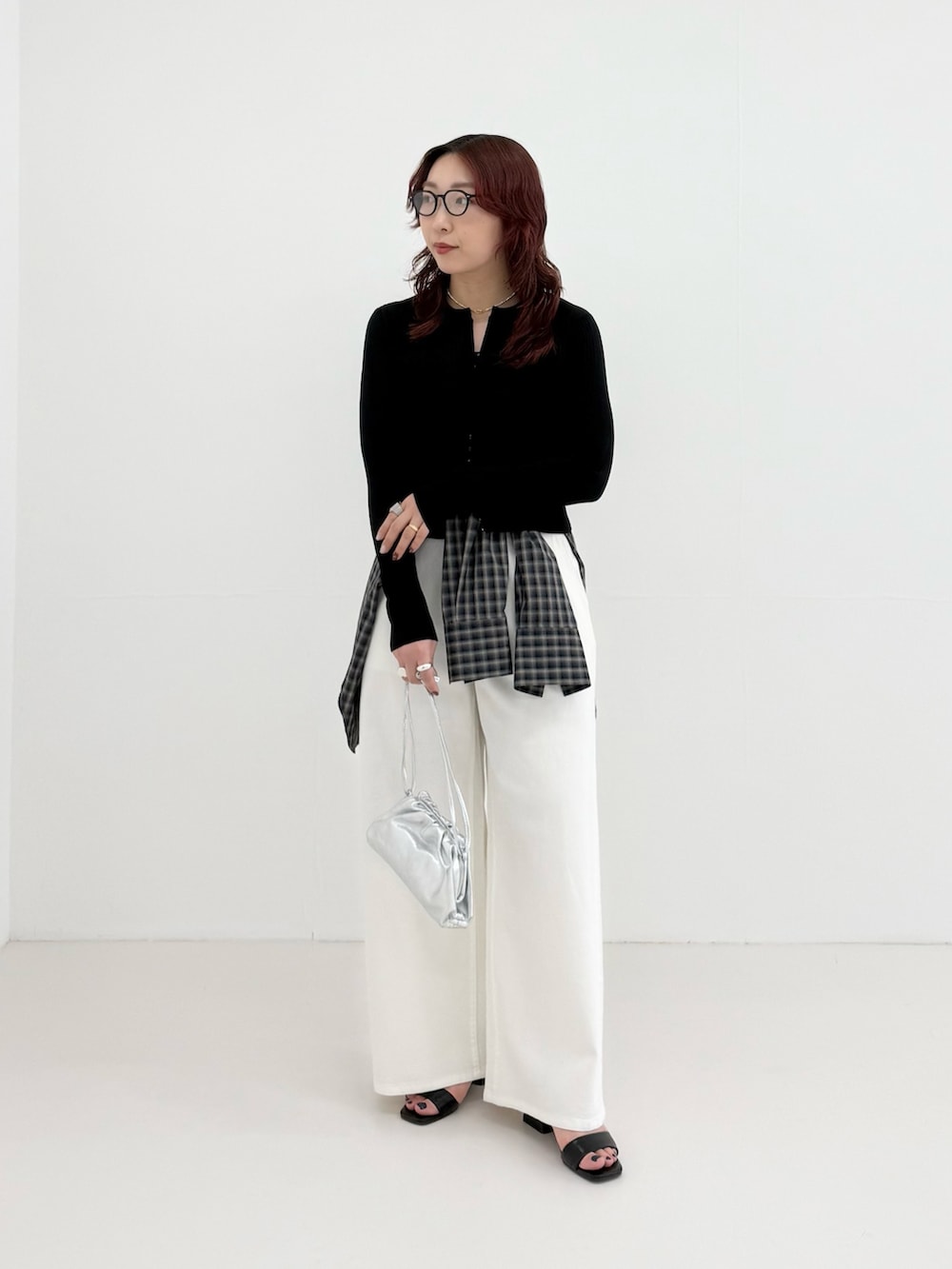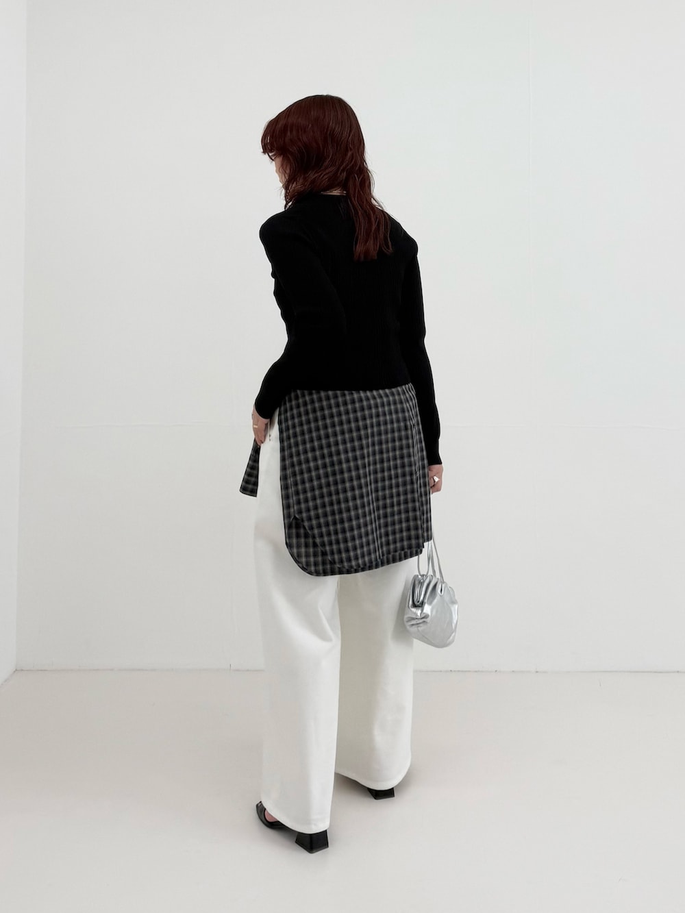 細身のシルエットですが、しっかりリブが効いていて着やすいです◎