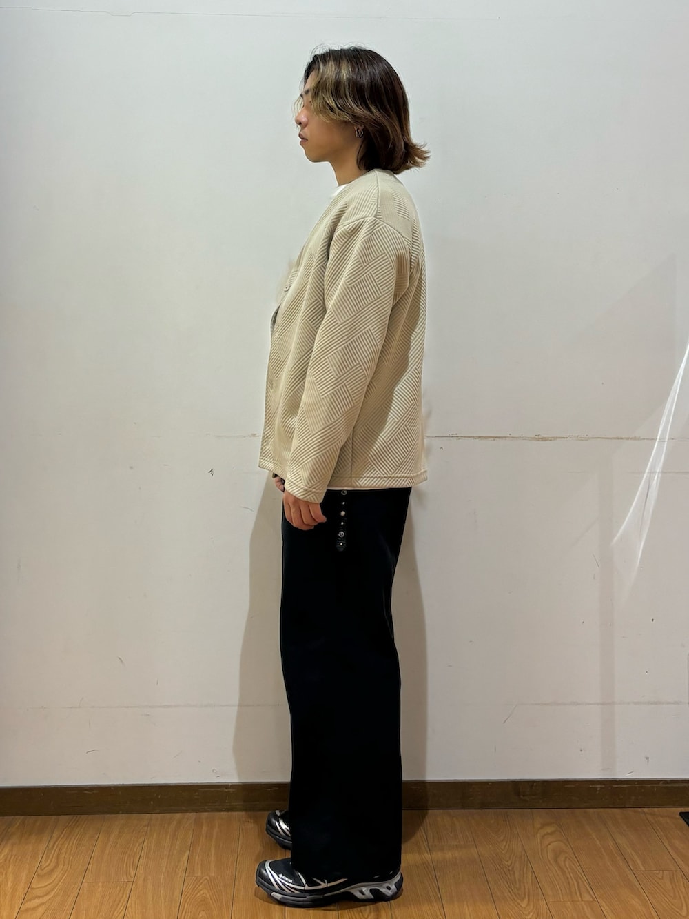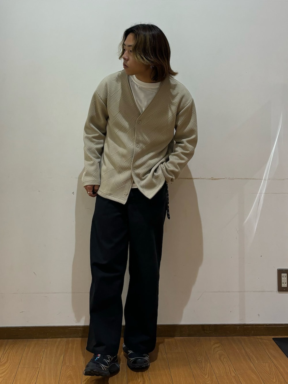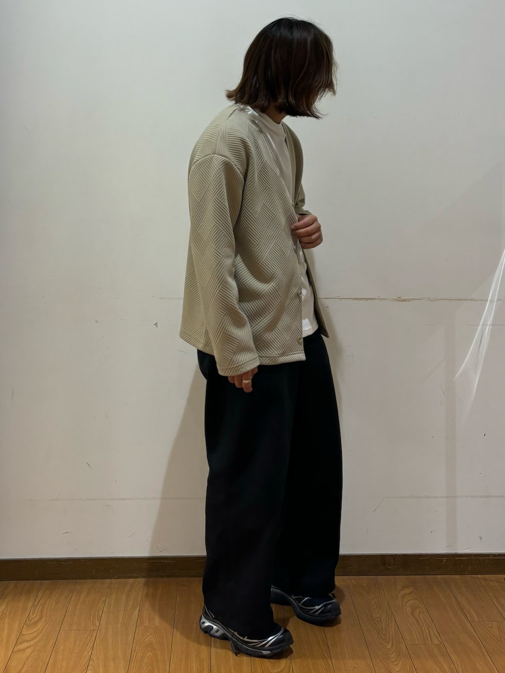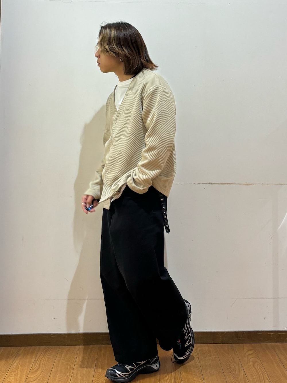 トップスのカーディガンはややゆとりがあるサイズ感でジャガード生地が特徴的です!