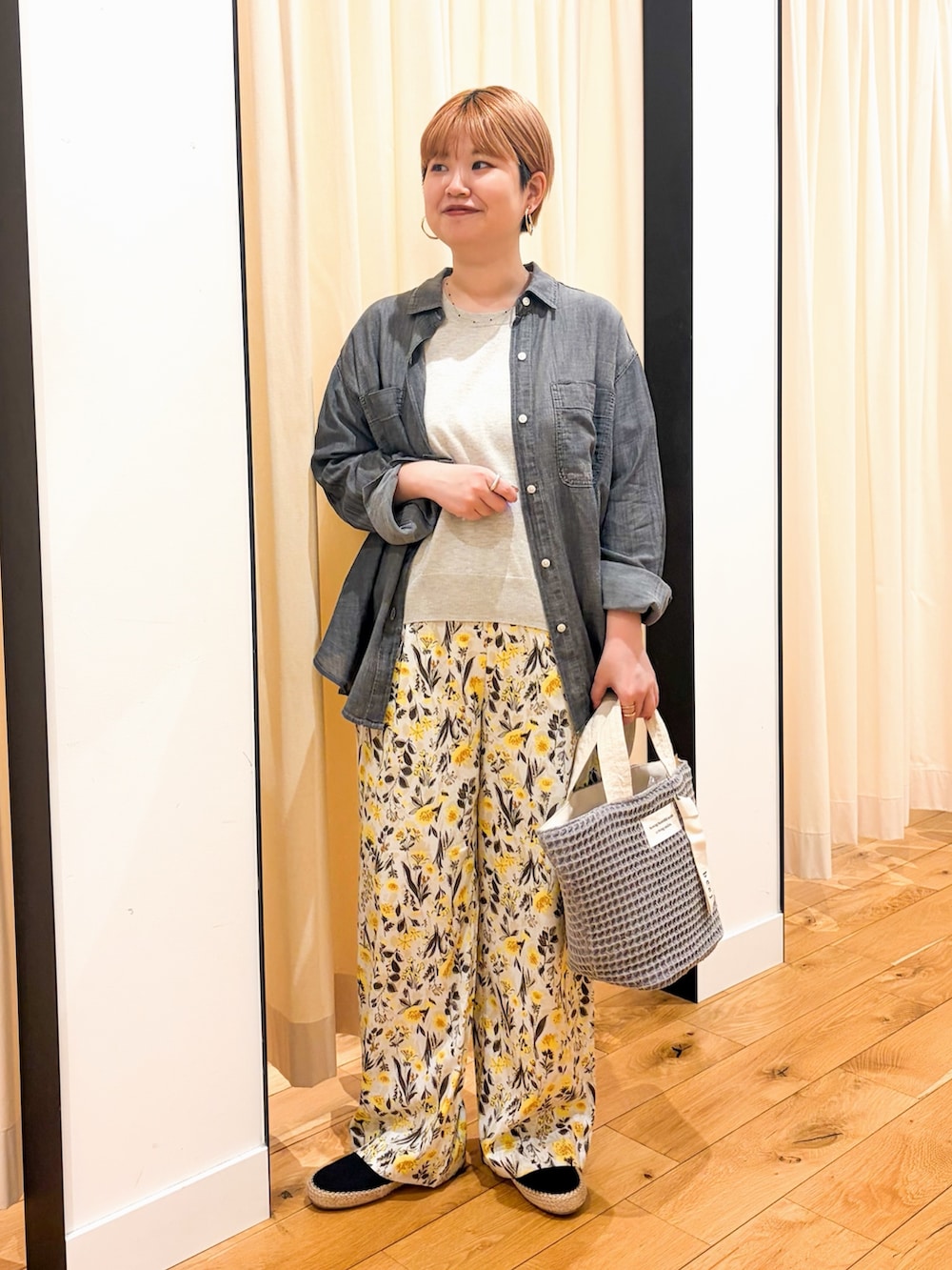 フラワープリントパンツは、柔らかい色合いなので