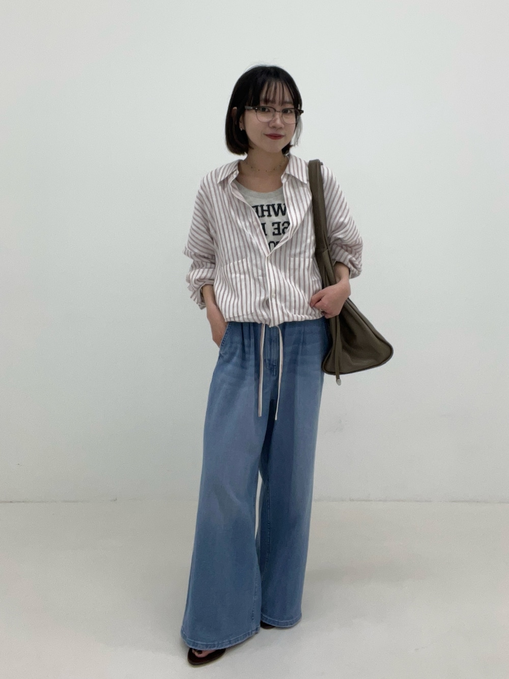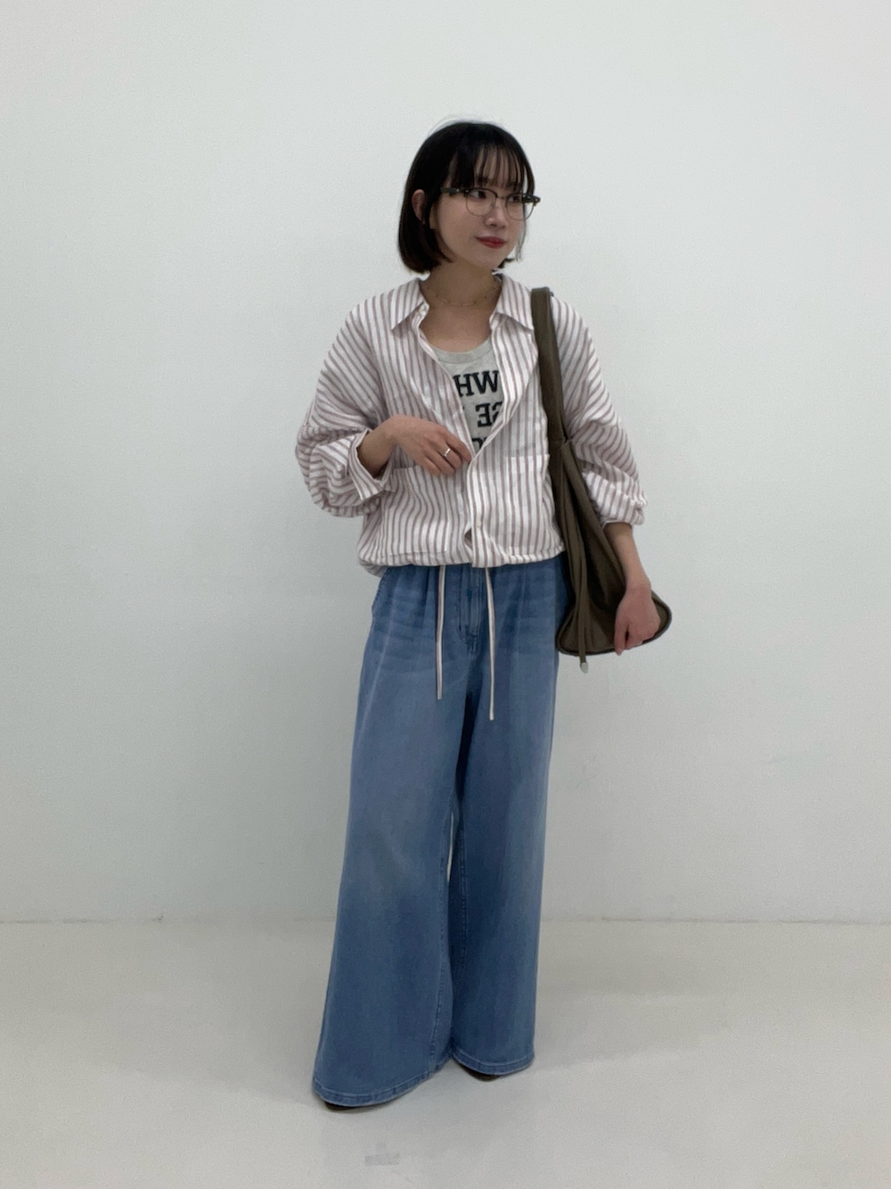 ボリュームたっぷりのワイドシルエットで、敢えてずるっと履くのが今っぽくて可愛いです✨