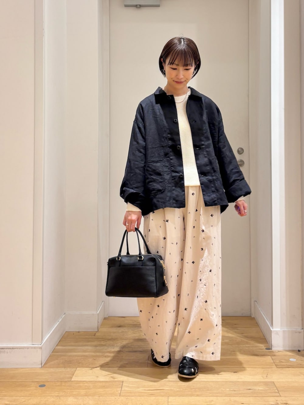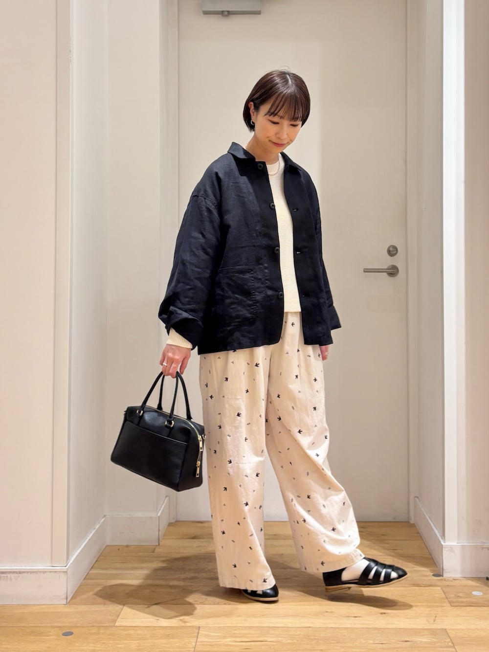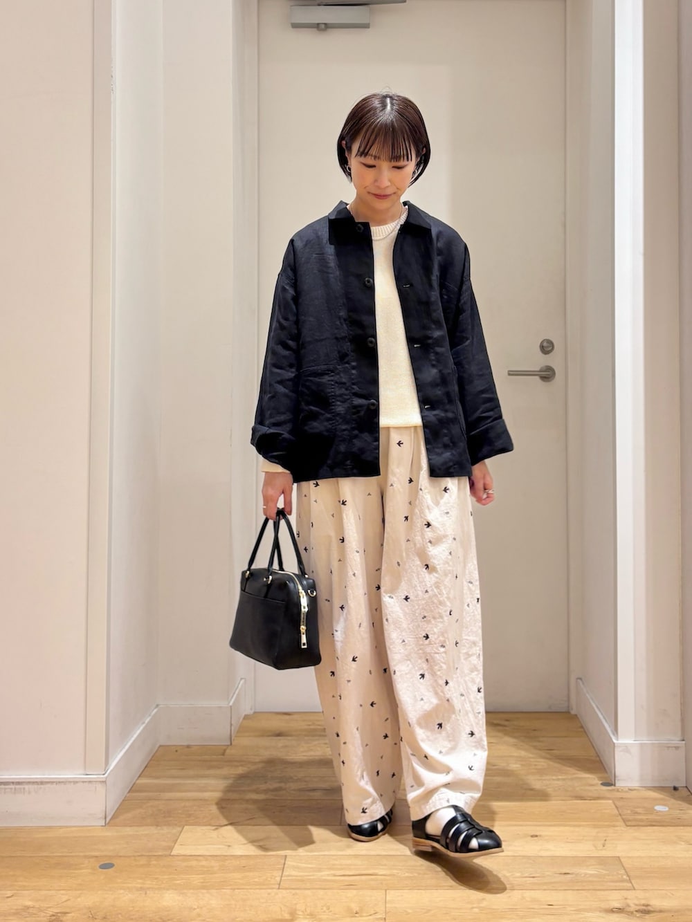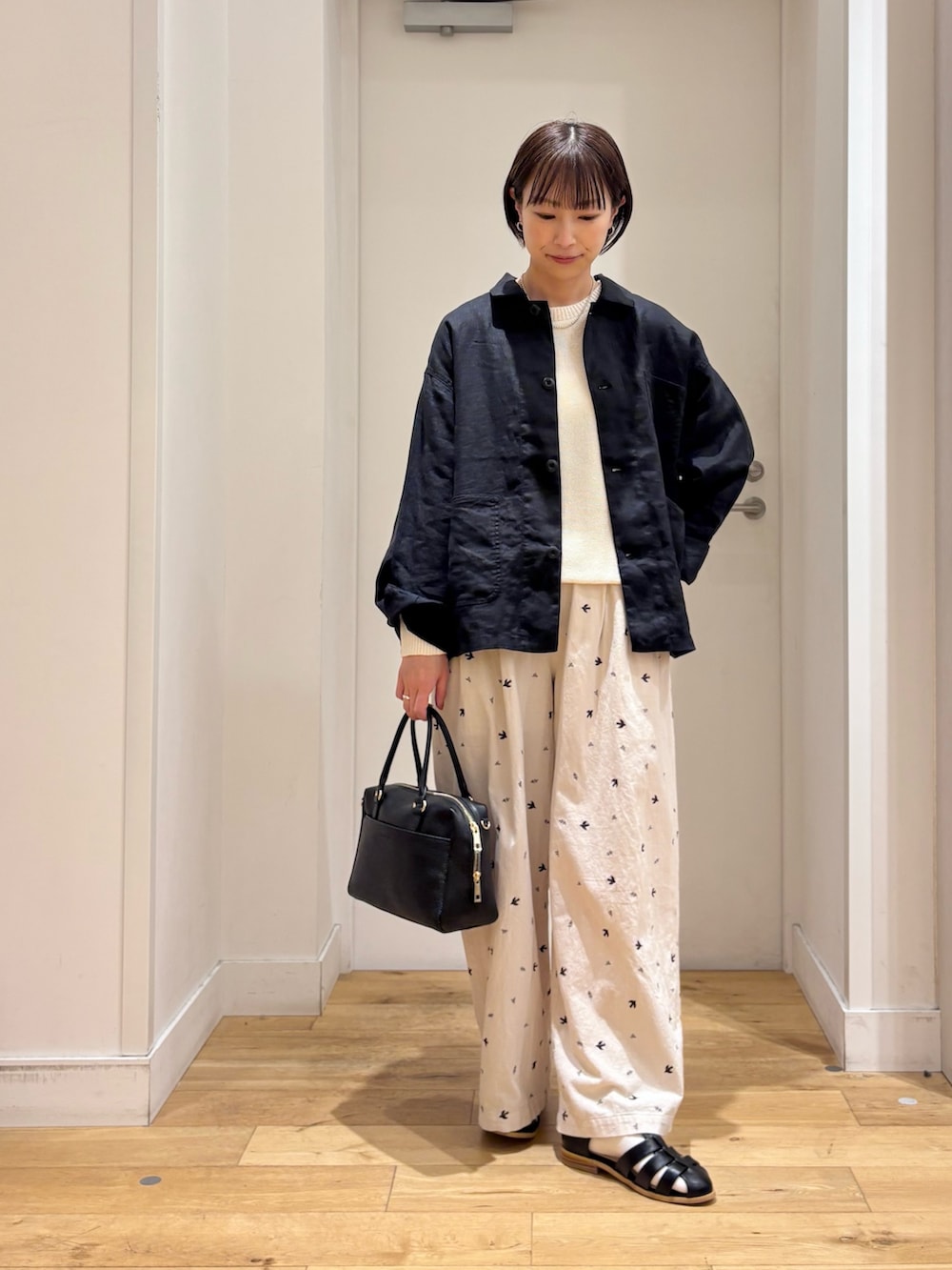 カバーオールは、リネンのナチュラルな雰囲気が大人な印象に◎