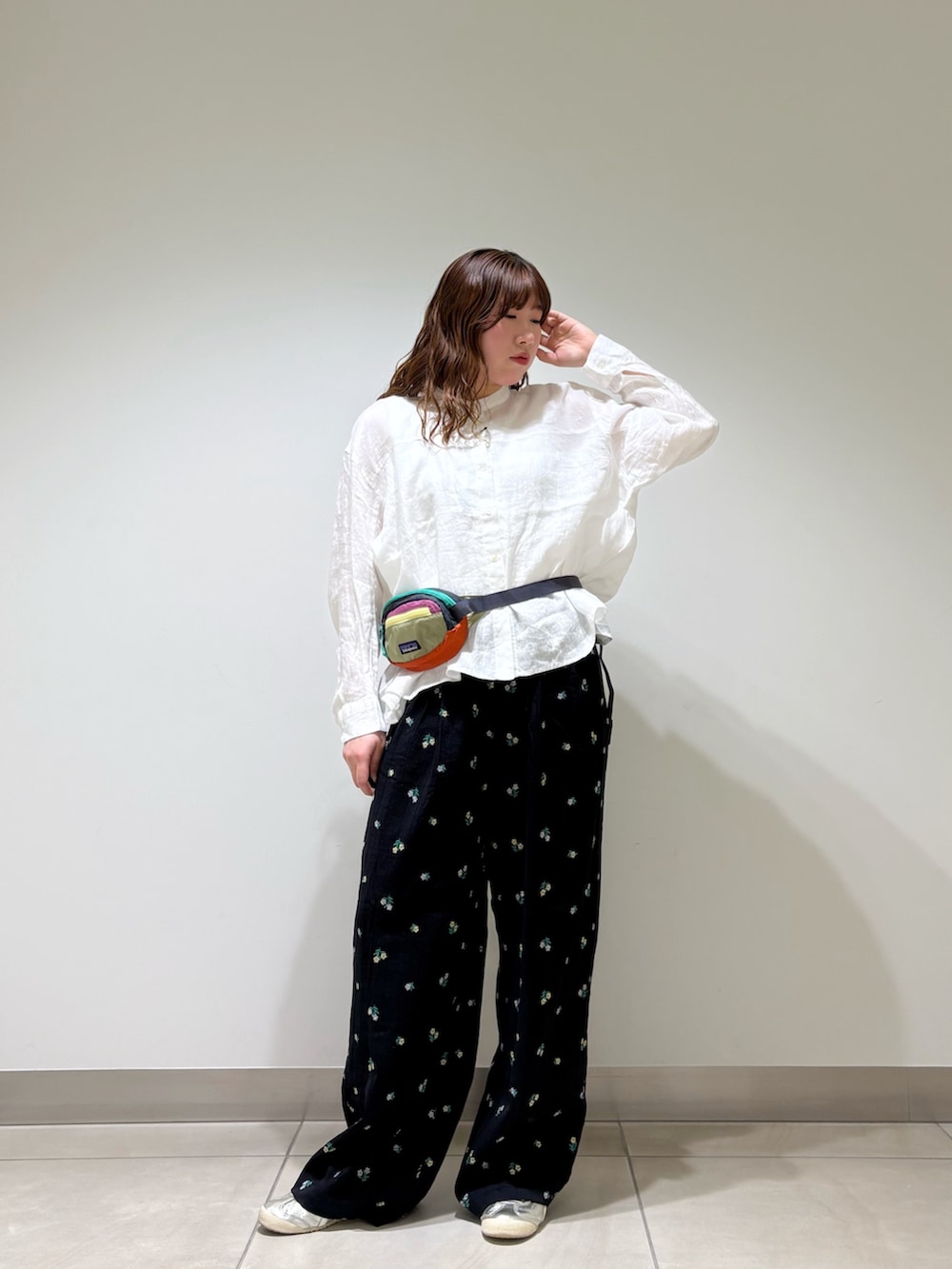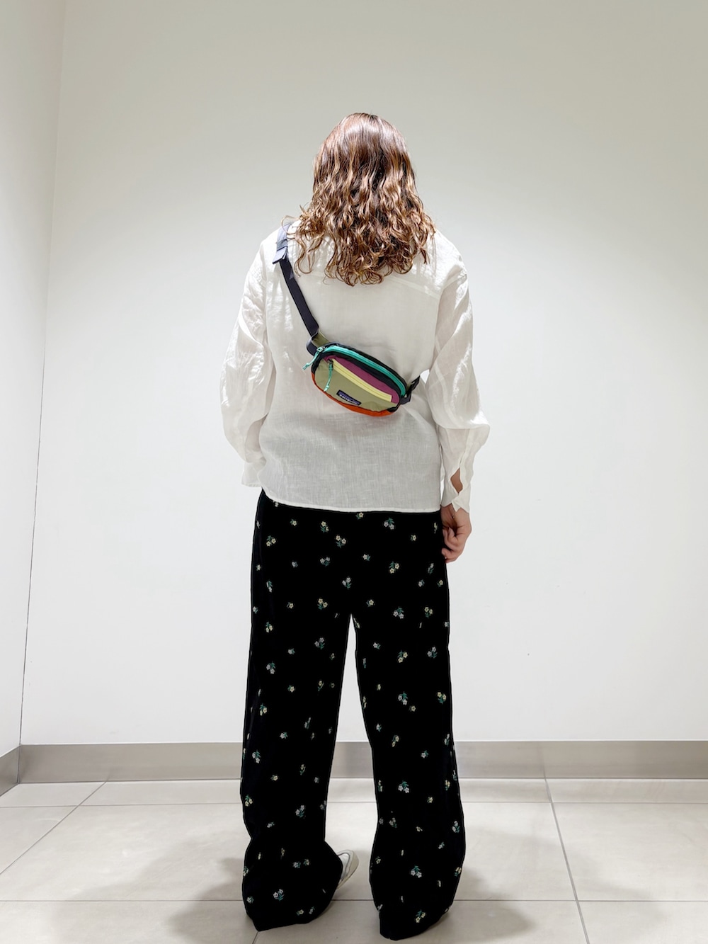 Patagoniaのウエストポーチもカラフルで差し色になります。