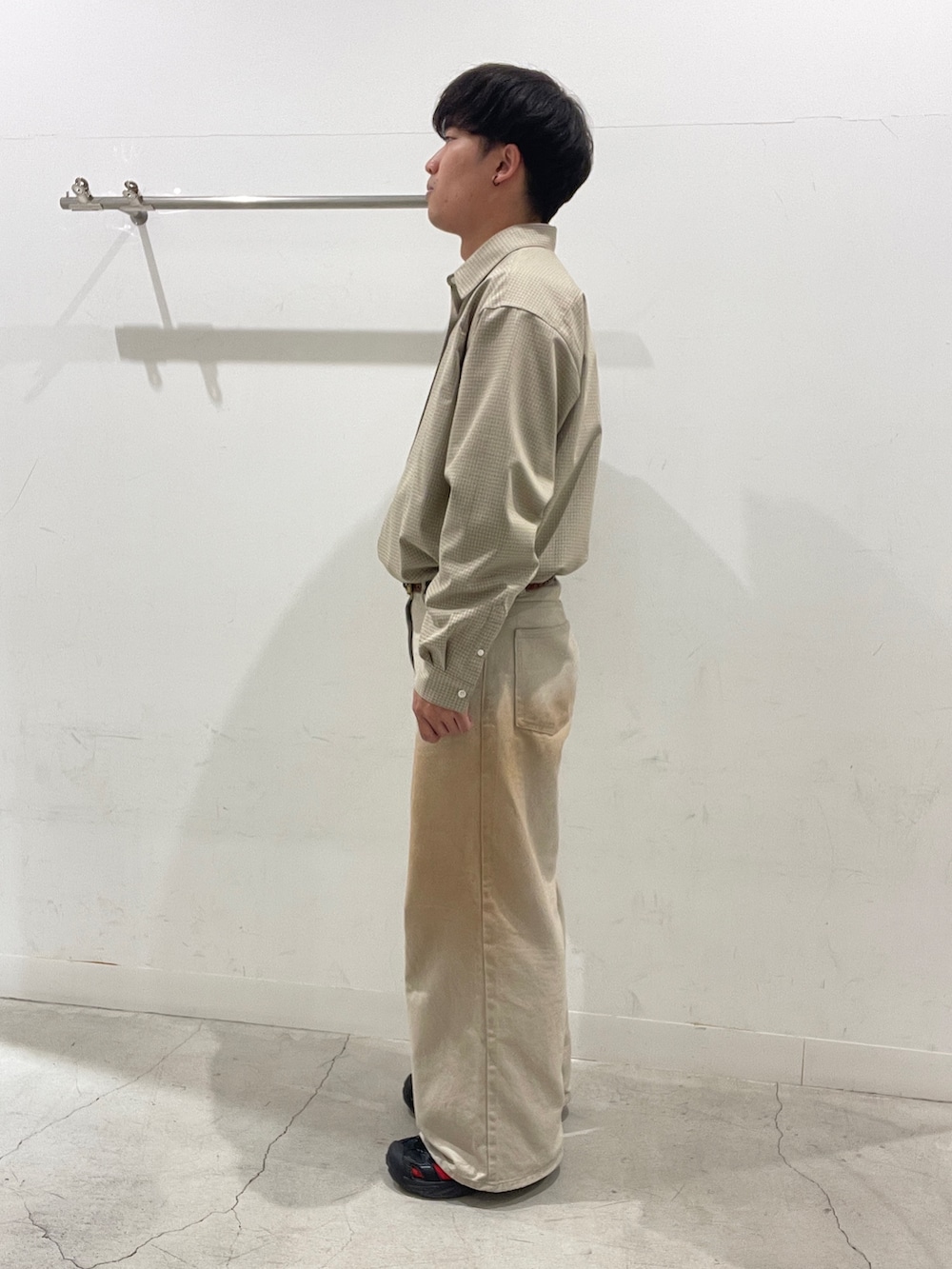 ヴィンテージ感のあるベージュデニムで全体をまとめ、リラックスしつつこなれた雰囲気に仕上げました!