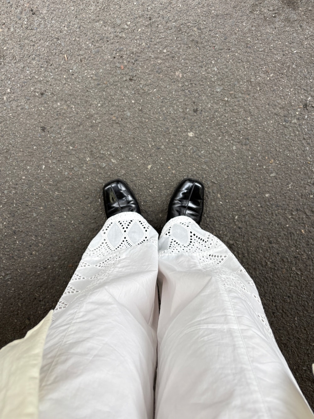 ボトムスは裾刺繍の、春らしいアイテムを合わせました!
