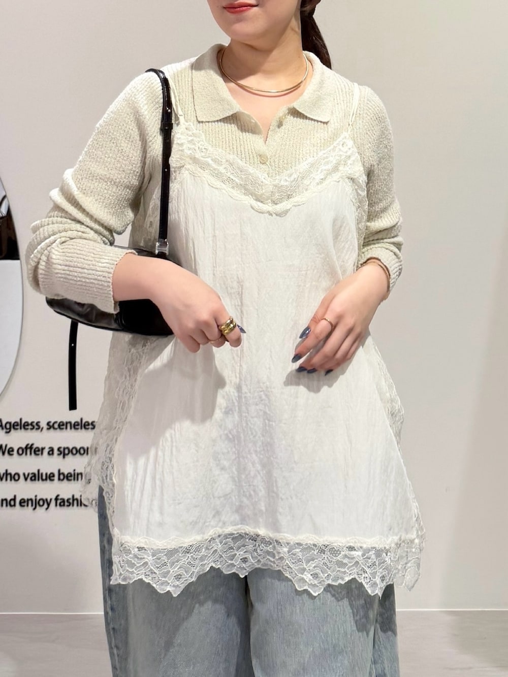 KBF『一部WEB限定カラー』ミニブークレレイヤードニットシャツ- カラー:
