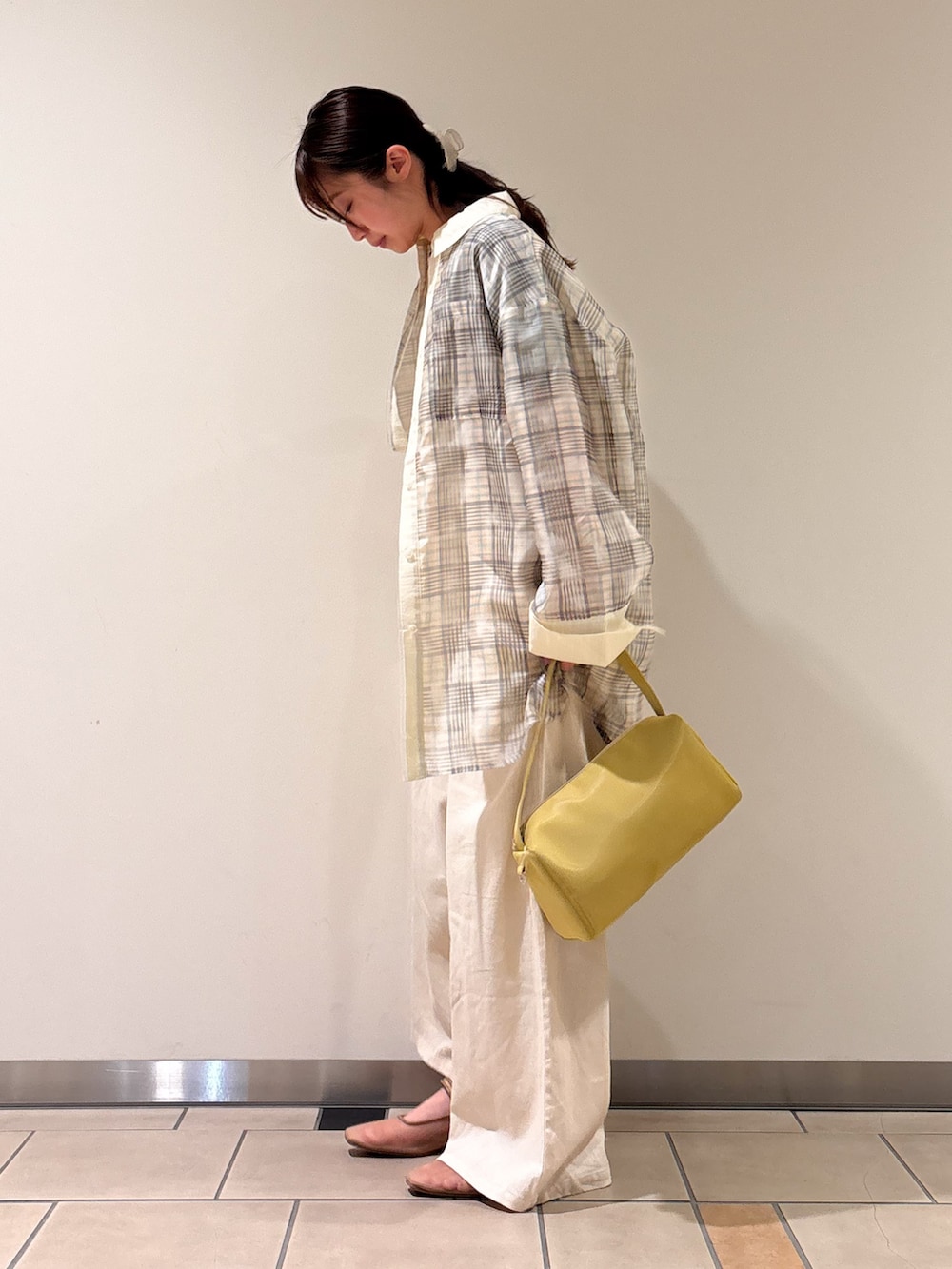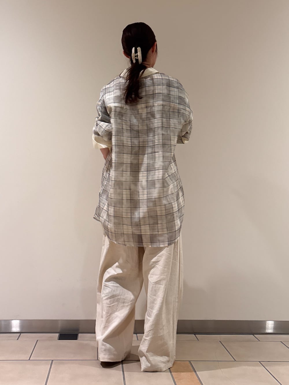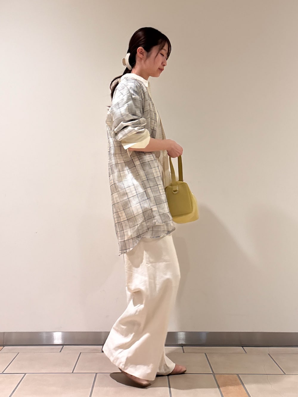 パンツはリネンの涼しげな印象と、
