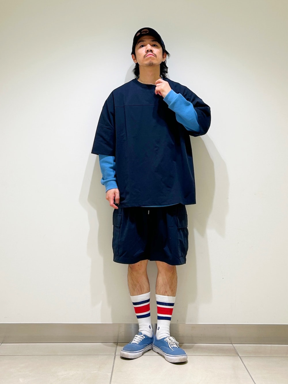 半袖×ショーツはまだ早いので、ロンTをあわせました!