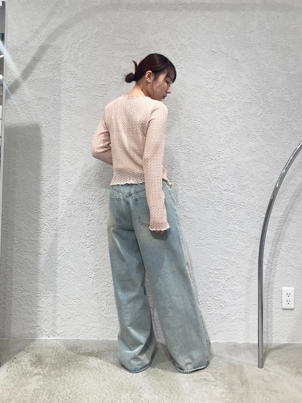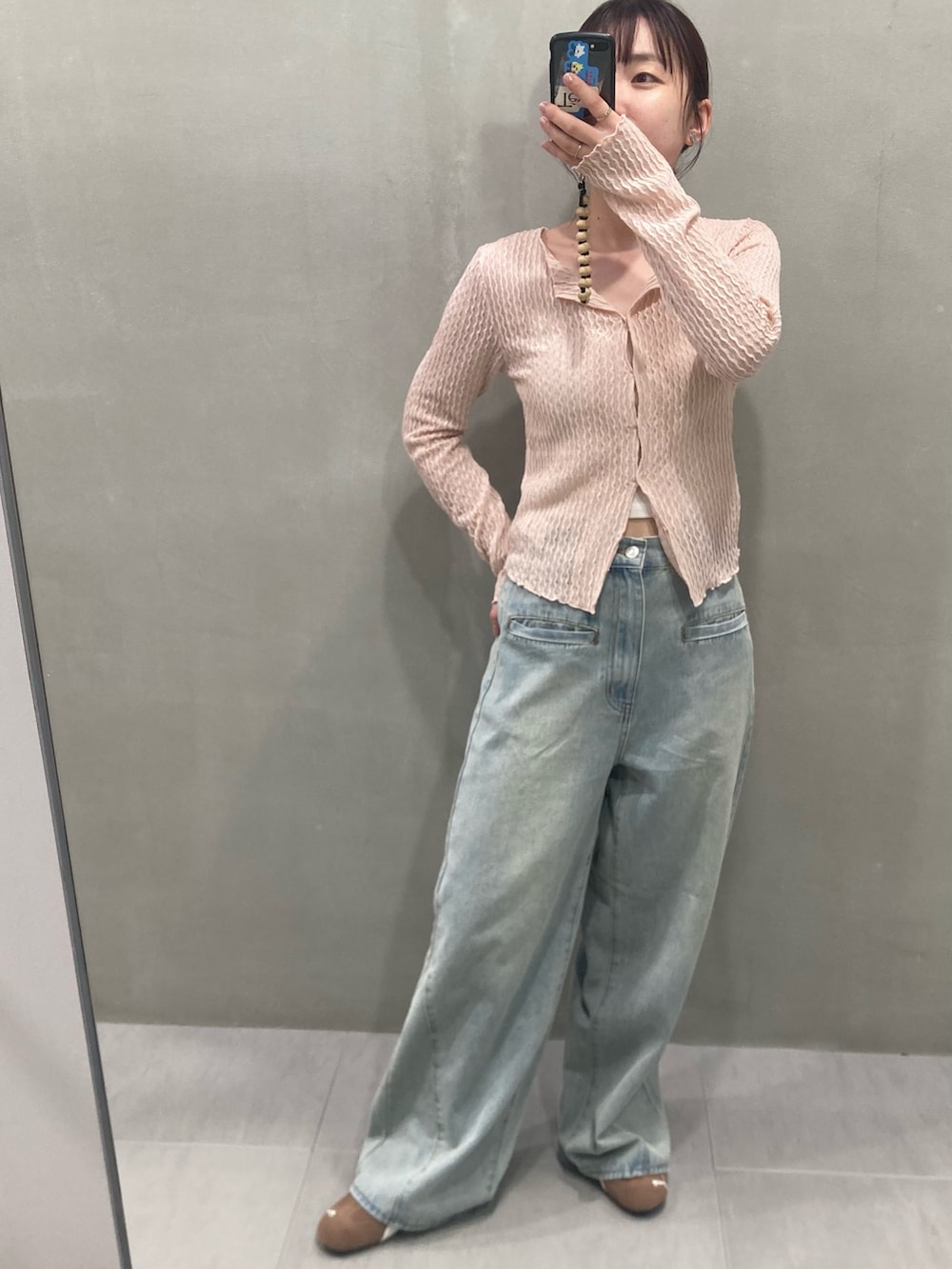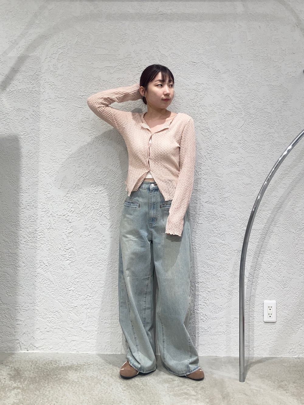 程よいワイドシルエットのデニムは少しウエストを落として履くとこなれ感が出ておすすめです!