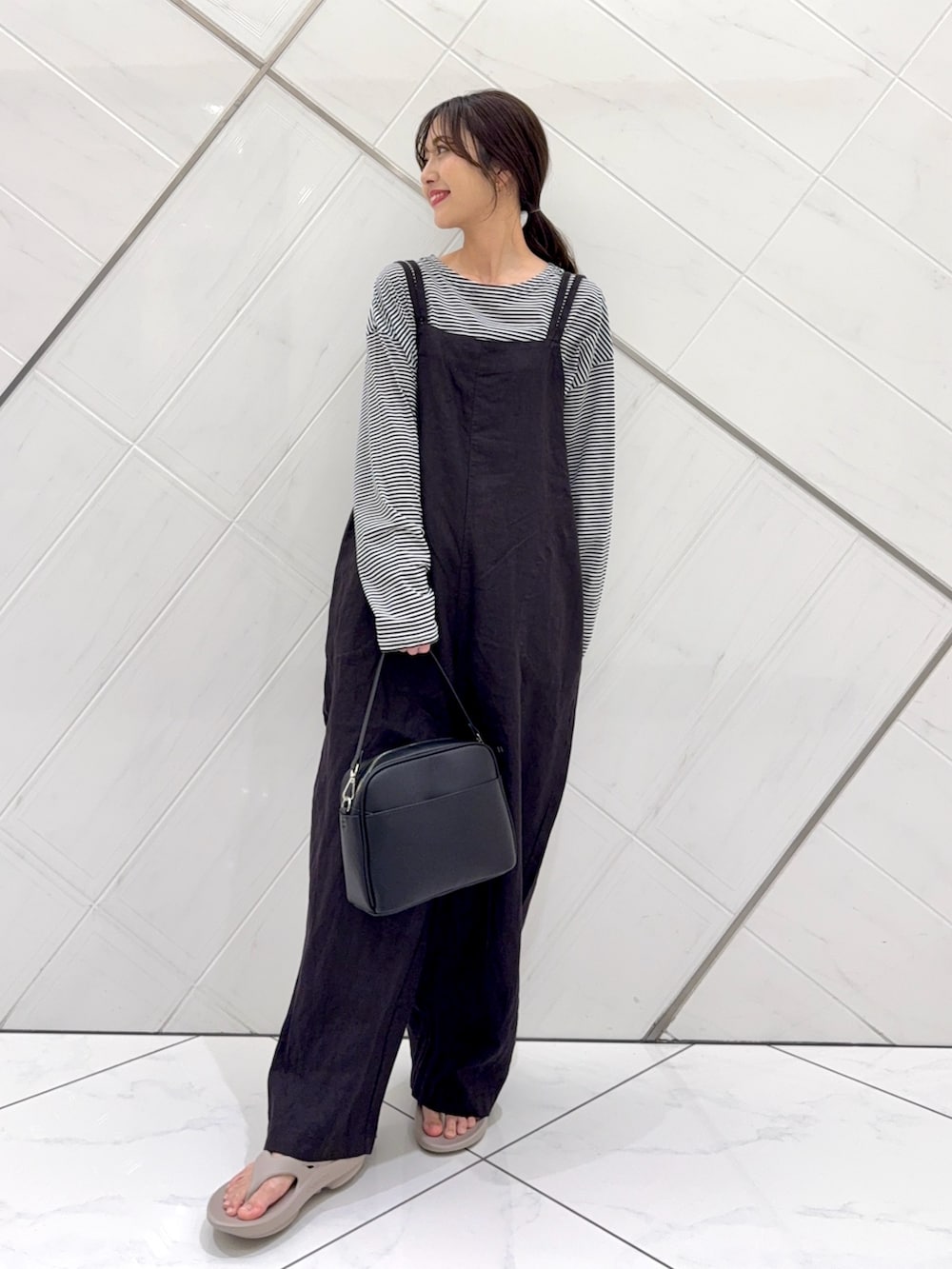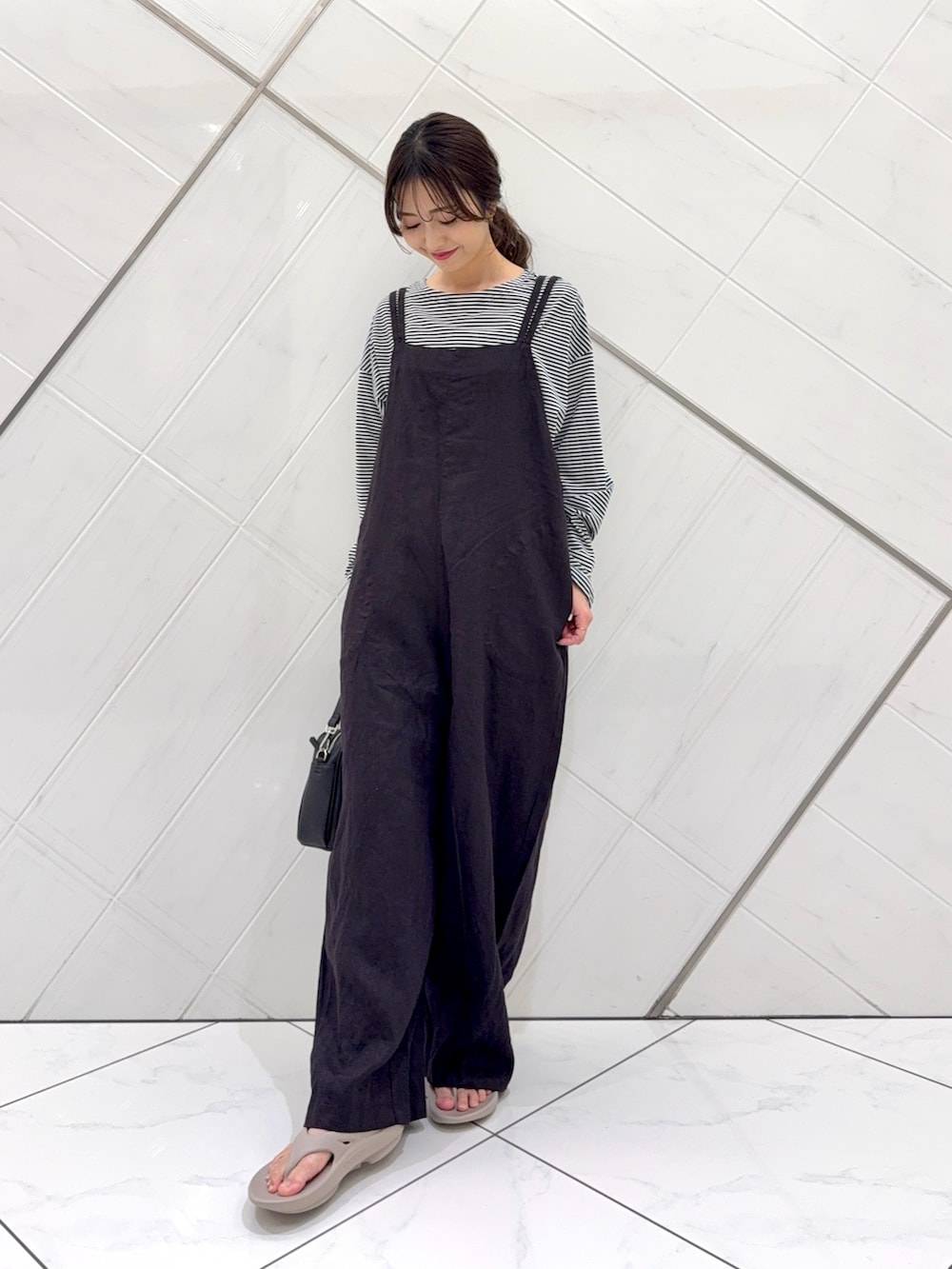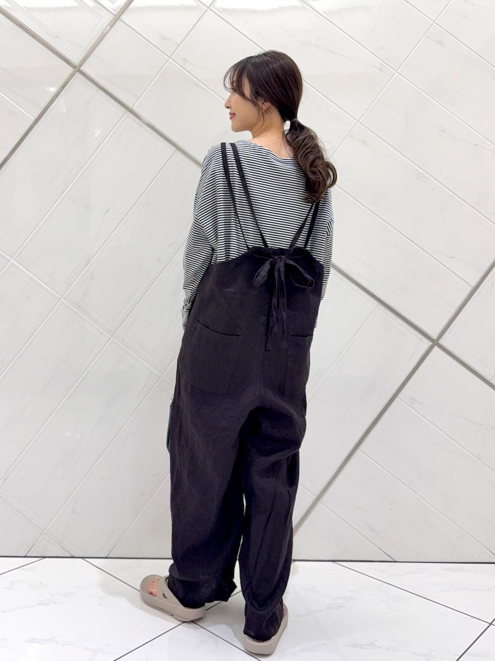 サロペットはリネン素材ながらも柔らかな肌触りで体のラインを拾わないゆったりとしたサイズ感なのでとても楽ちんで涼しいサロペットです。