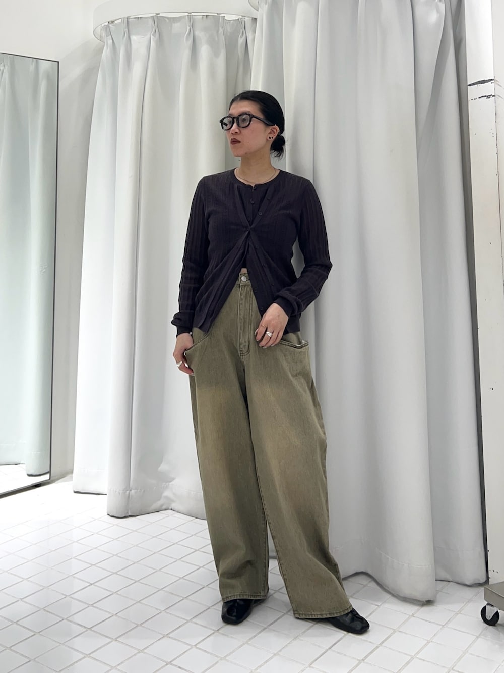 ウエストマークができちゃうカーディガンは、程よい透け感でトップスとしても羽織りとしても長く活躍するアイテム!