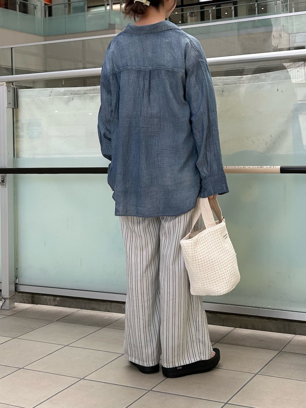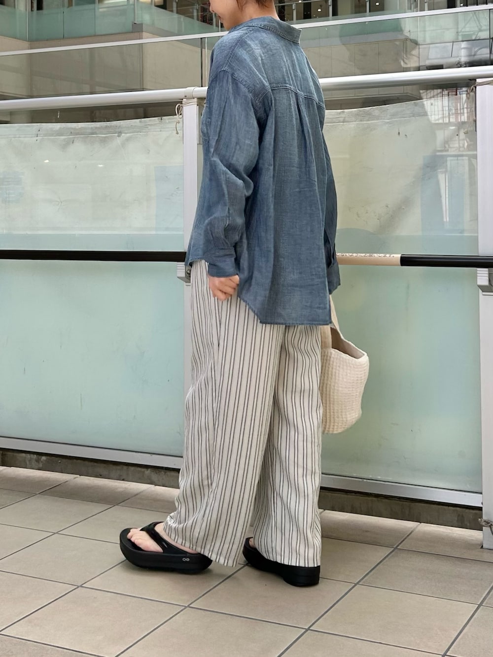 コーディネートのポイントになるストライプのパンツを合わせました。