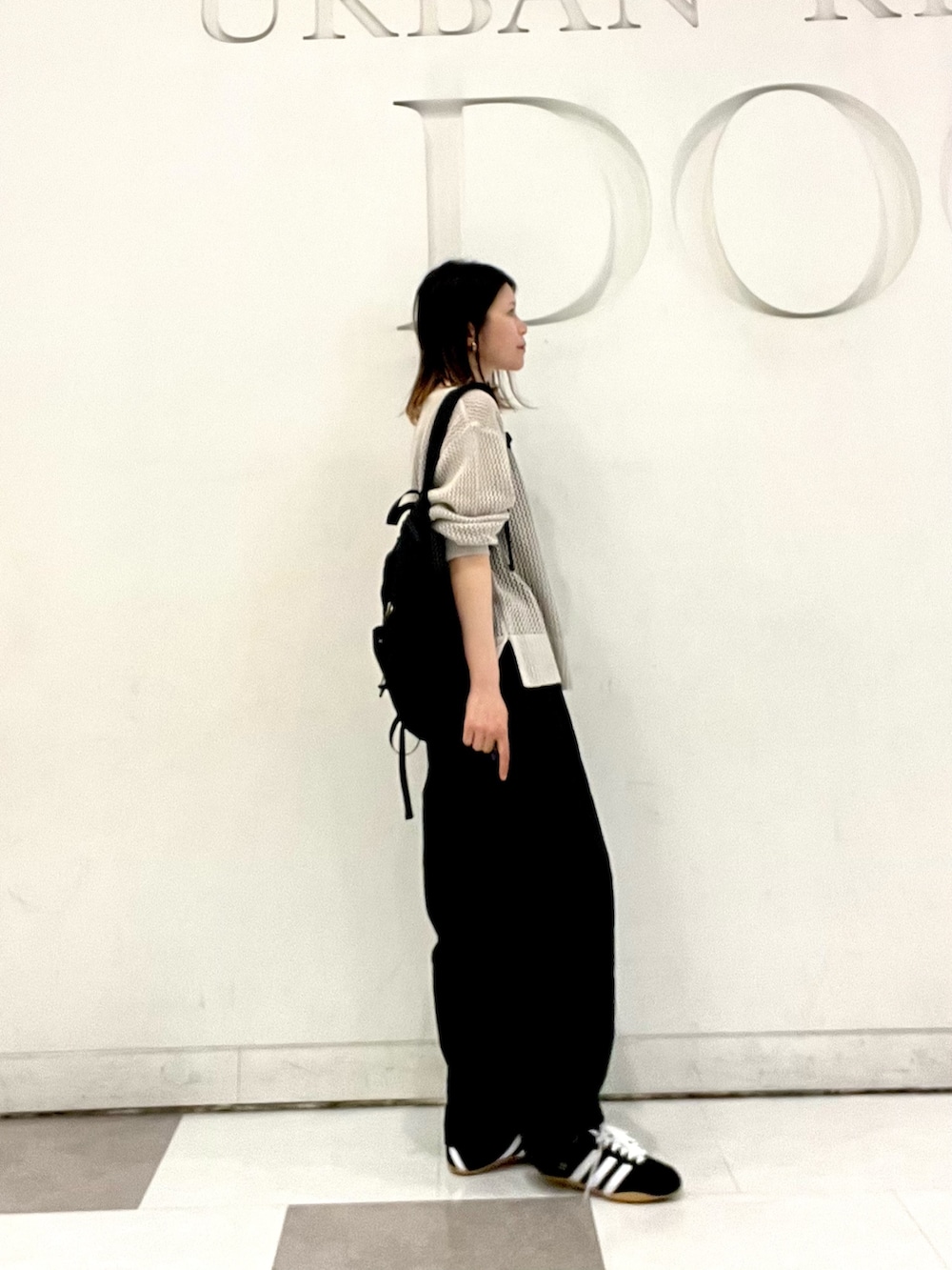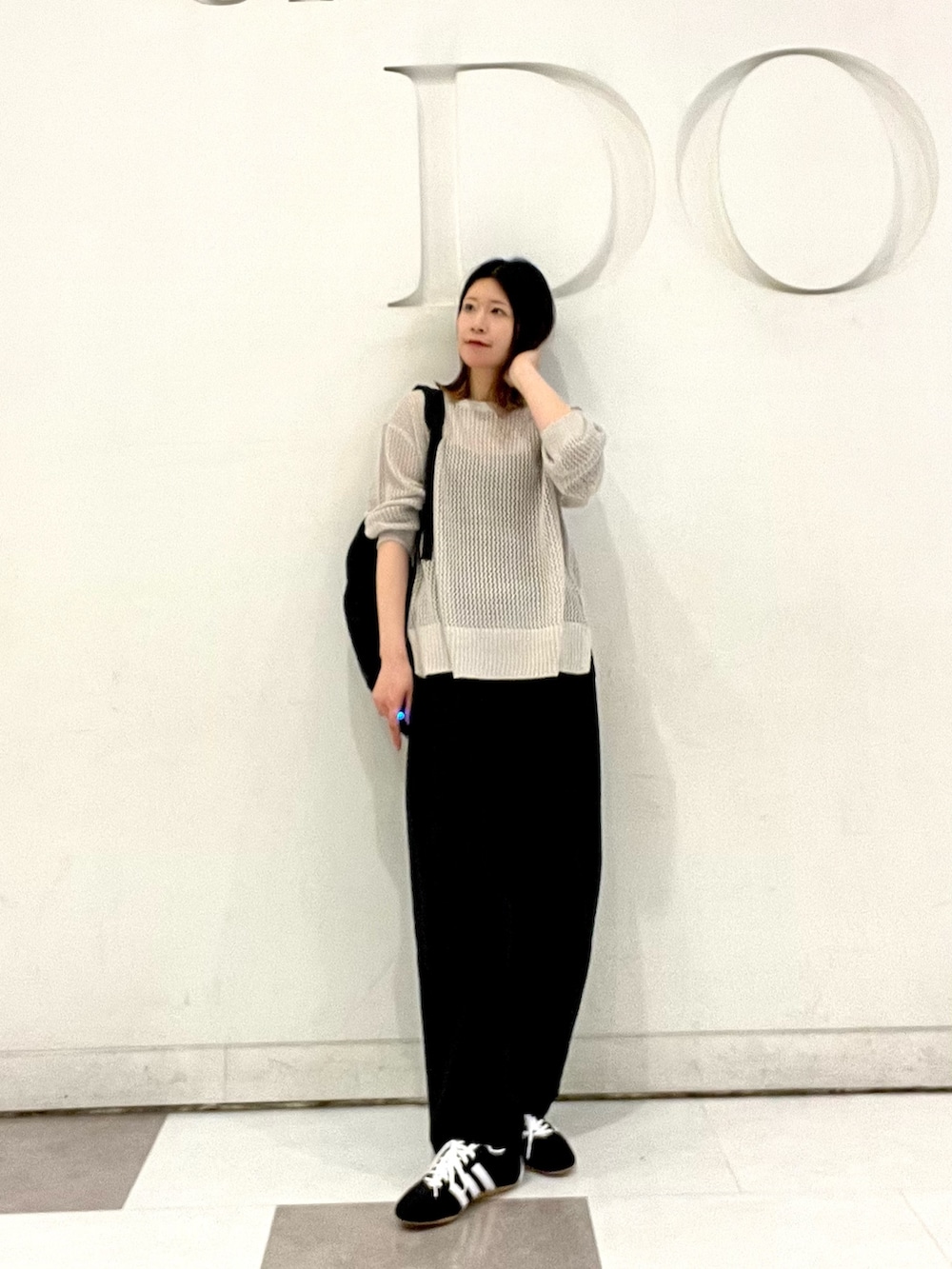 トップスは程よい透け感が大人っぽいメッシュニット◎ルーズなシルエットが可愛いです!レイヤードスタイルも楽しめます🫶🏻