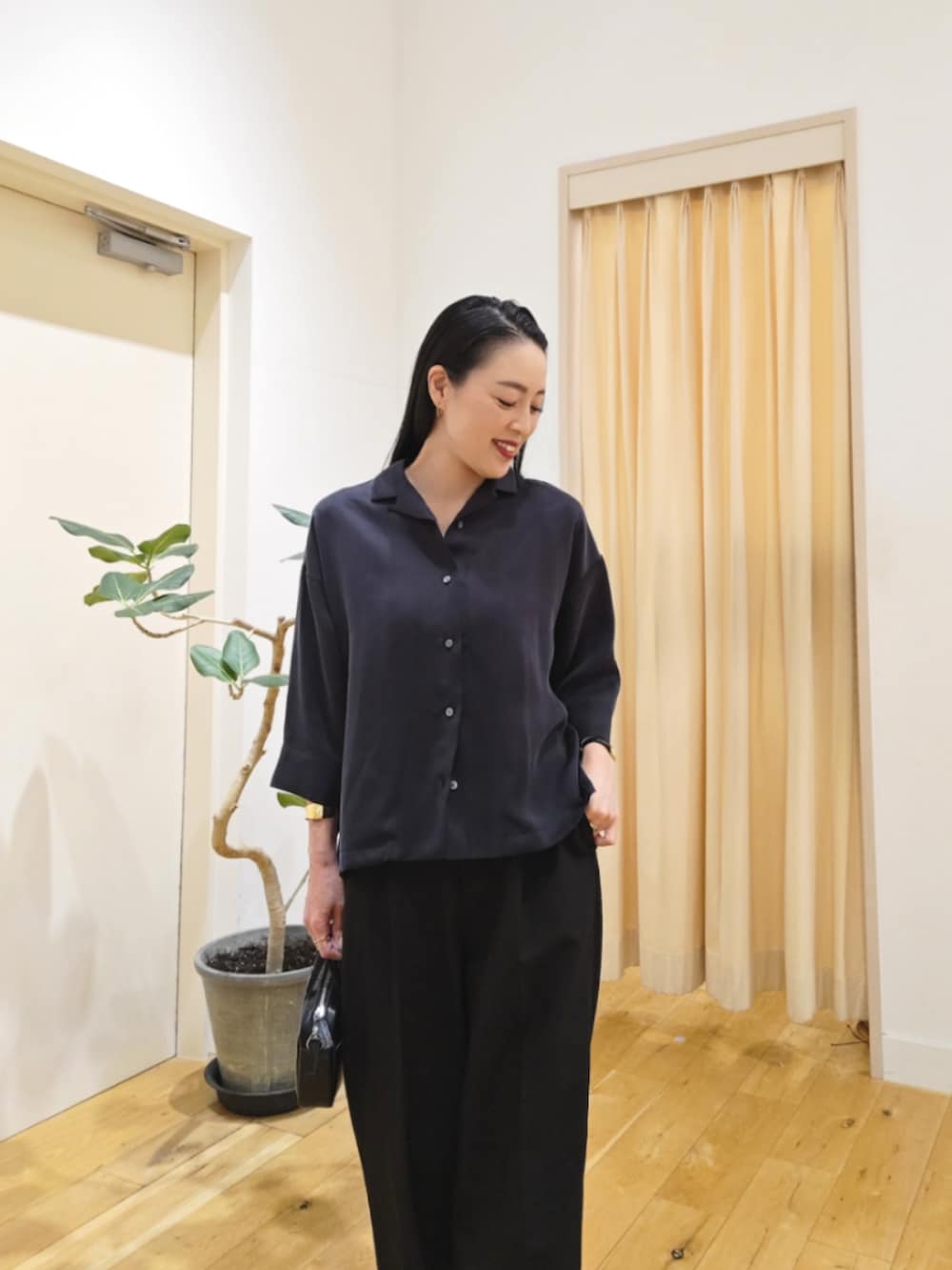 キュプラオープンカラーシャツ