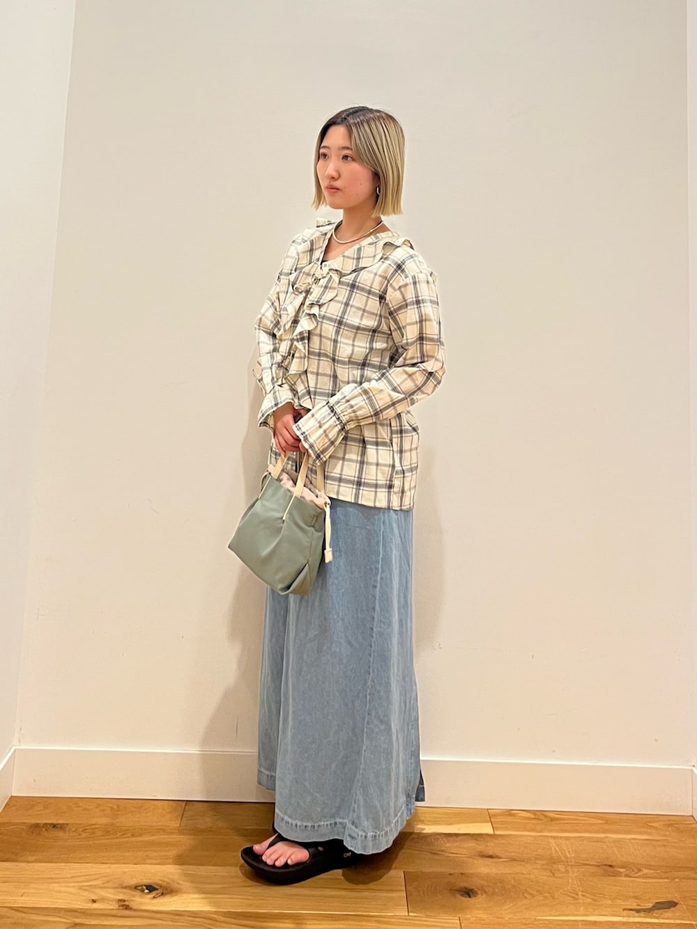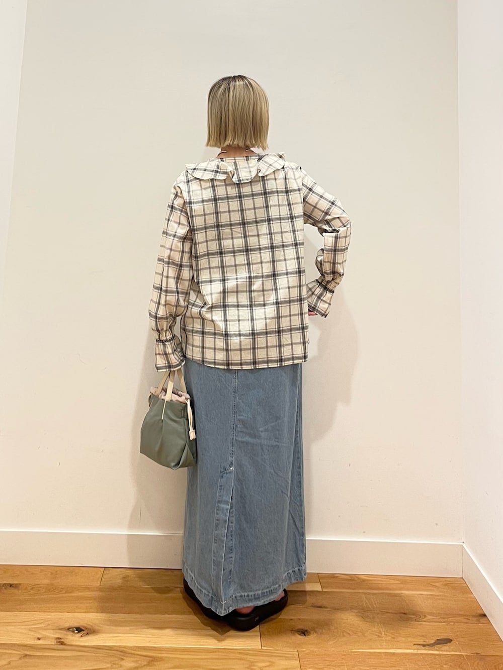 チェックフリルブラウス