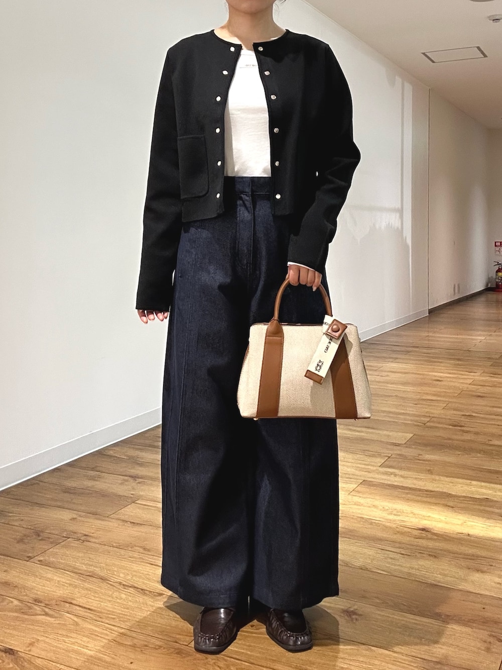 コンパクトなトップスにはハイウエストのパンツがぴったりです^^