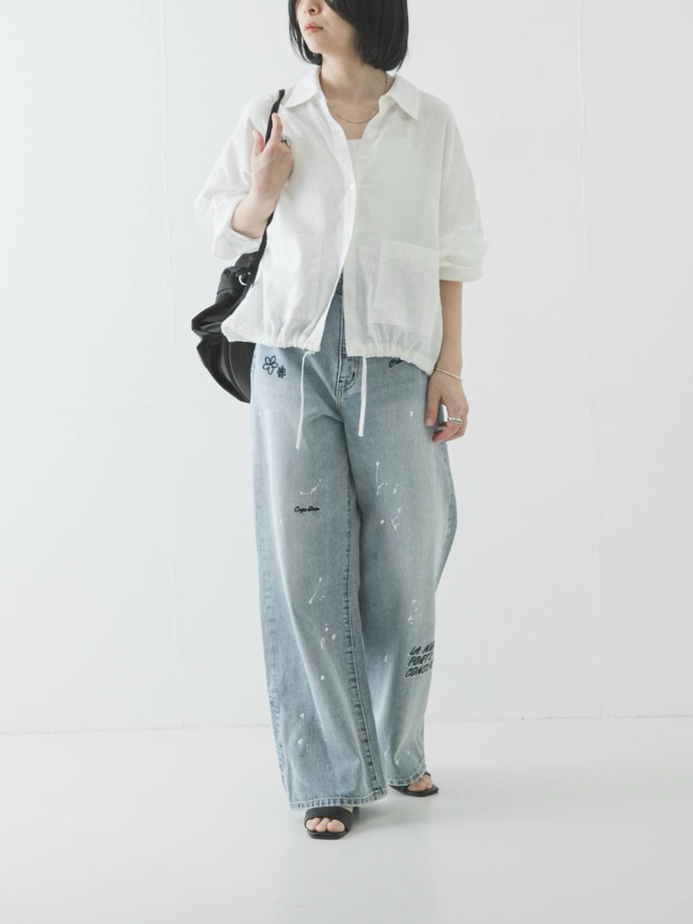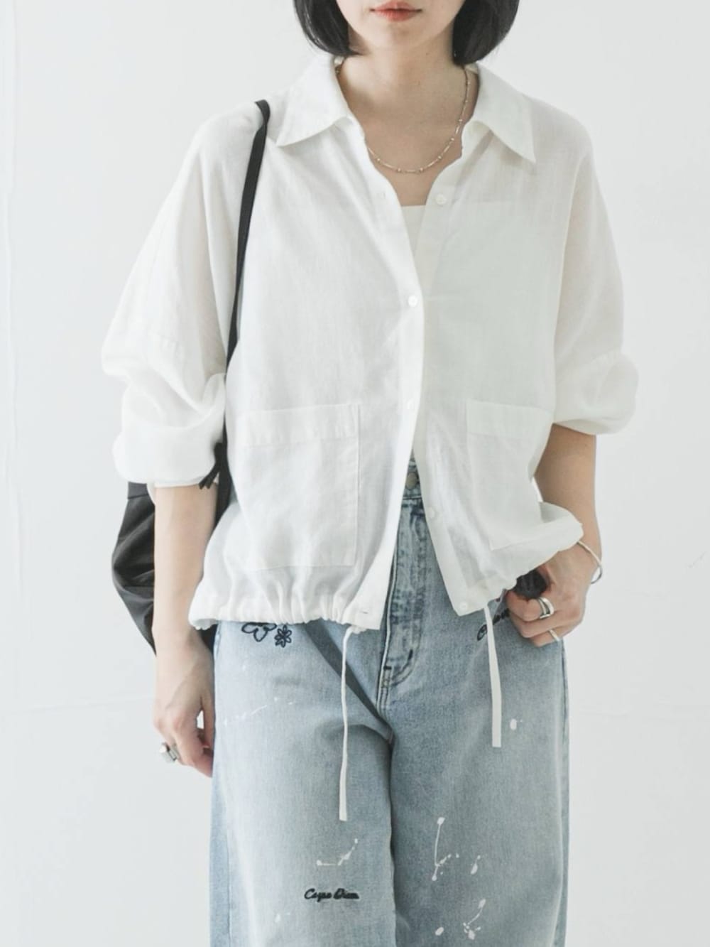 清涼感のある素材とドロスト仕様が、軽やかな抜け感を生むラミーレーヨンワイドショートシャツ。