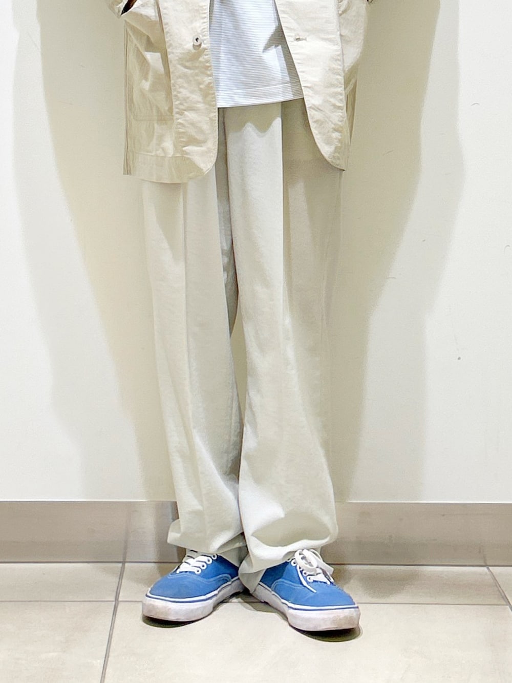 オールホワイト系でまとめましたが、それぞれ素材感が異なる組み合わせが◎