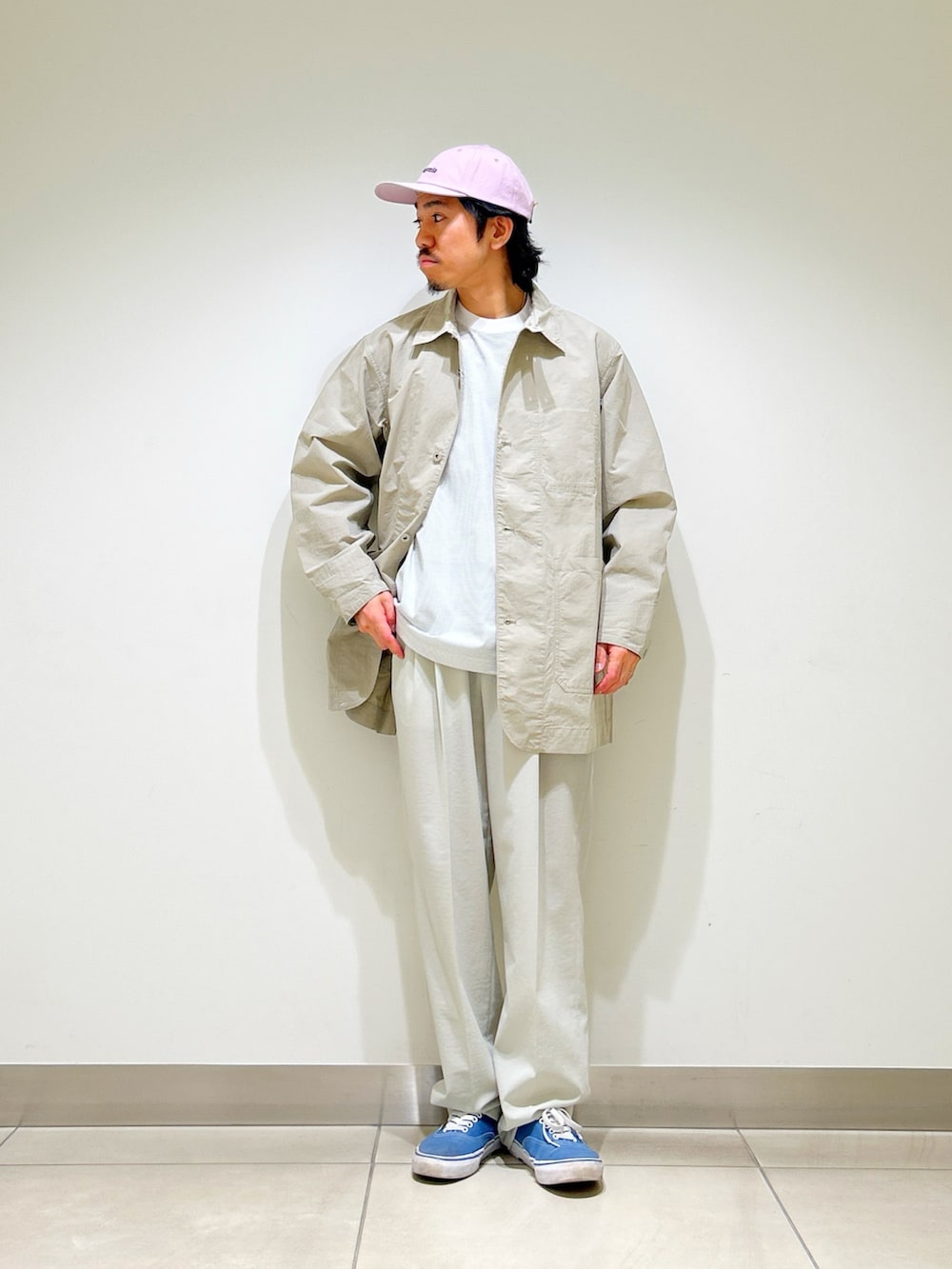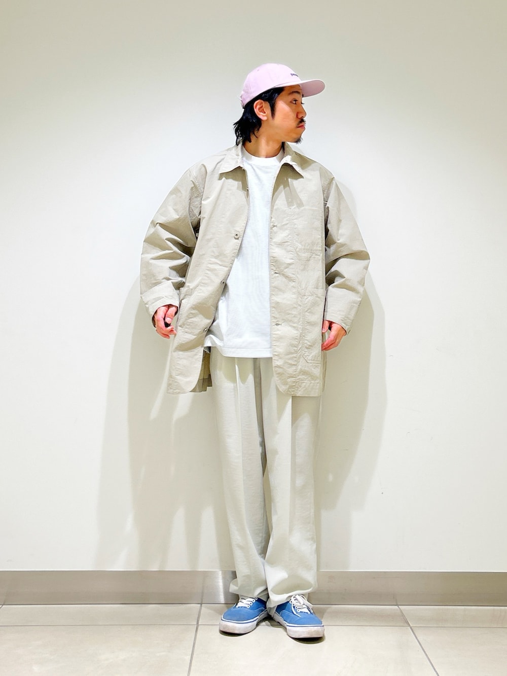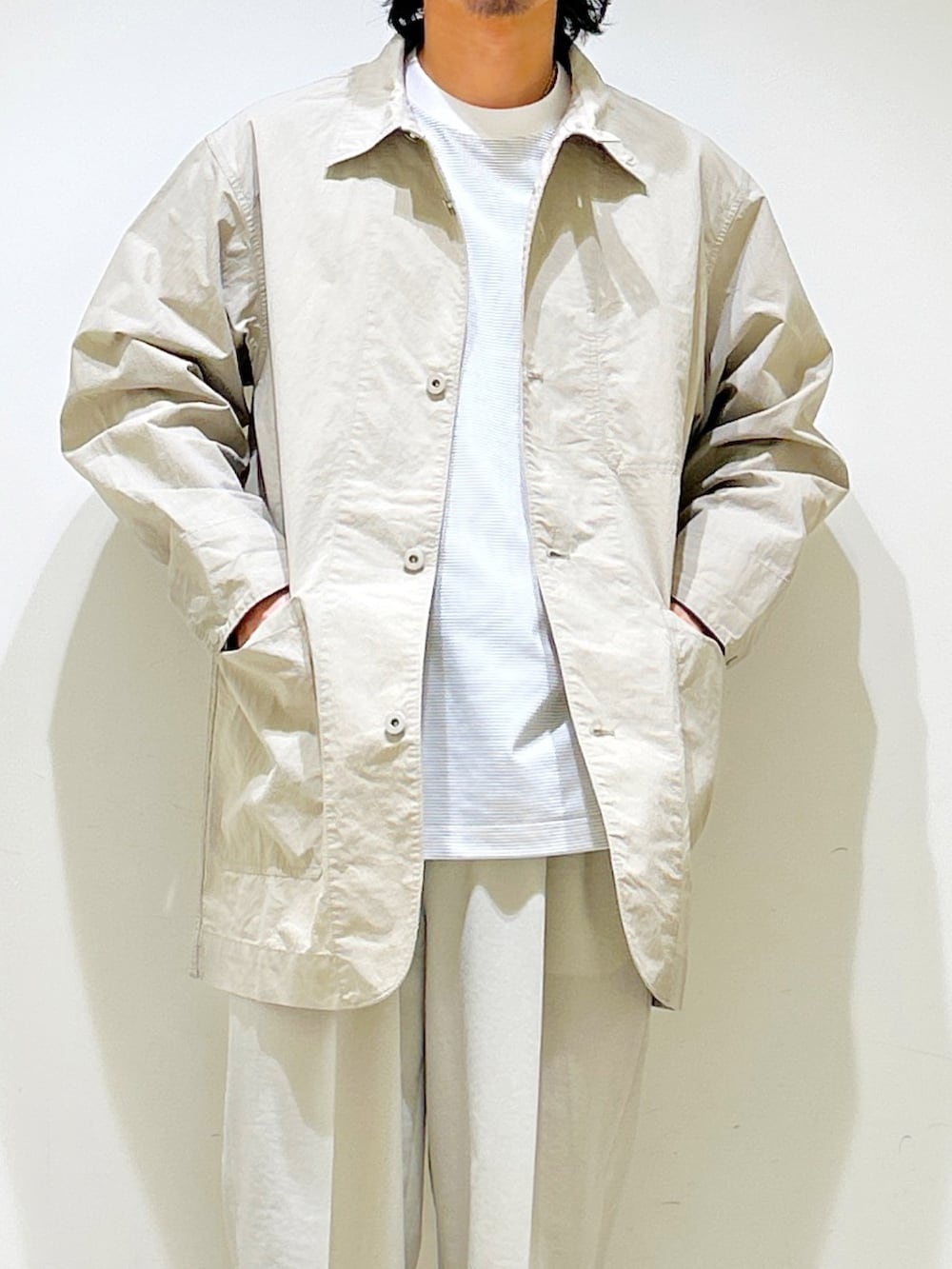 羽織れるカバーオールタイプのミドルコートは無骨すぎず、さらっと羽織れる今時期にぴったりなライトアウター。
