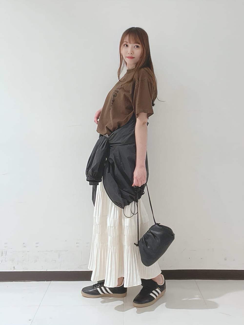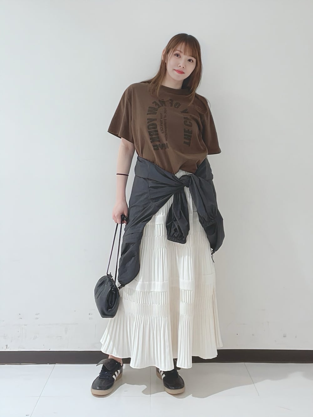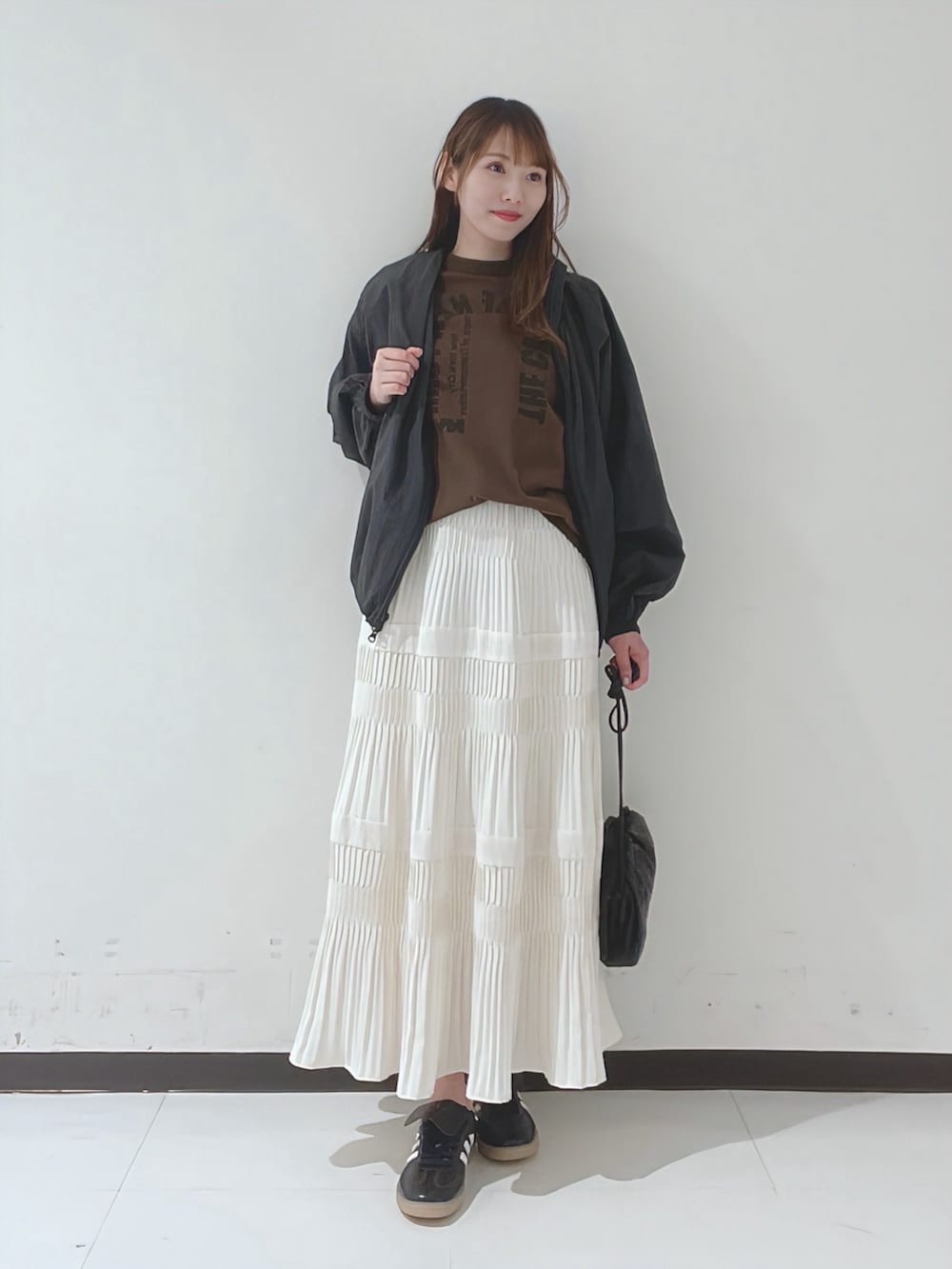 今回は合わせるアイテムをカジュアルでまとめて、甘さを抑えたきれいめカジュアルなスタイリングにしました!