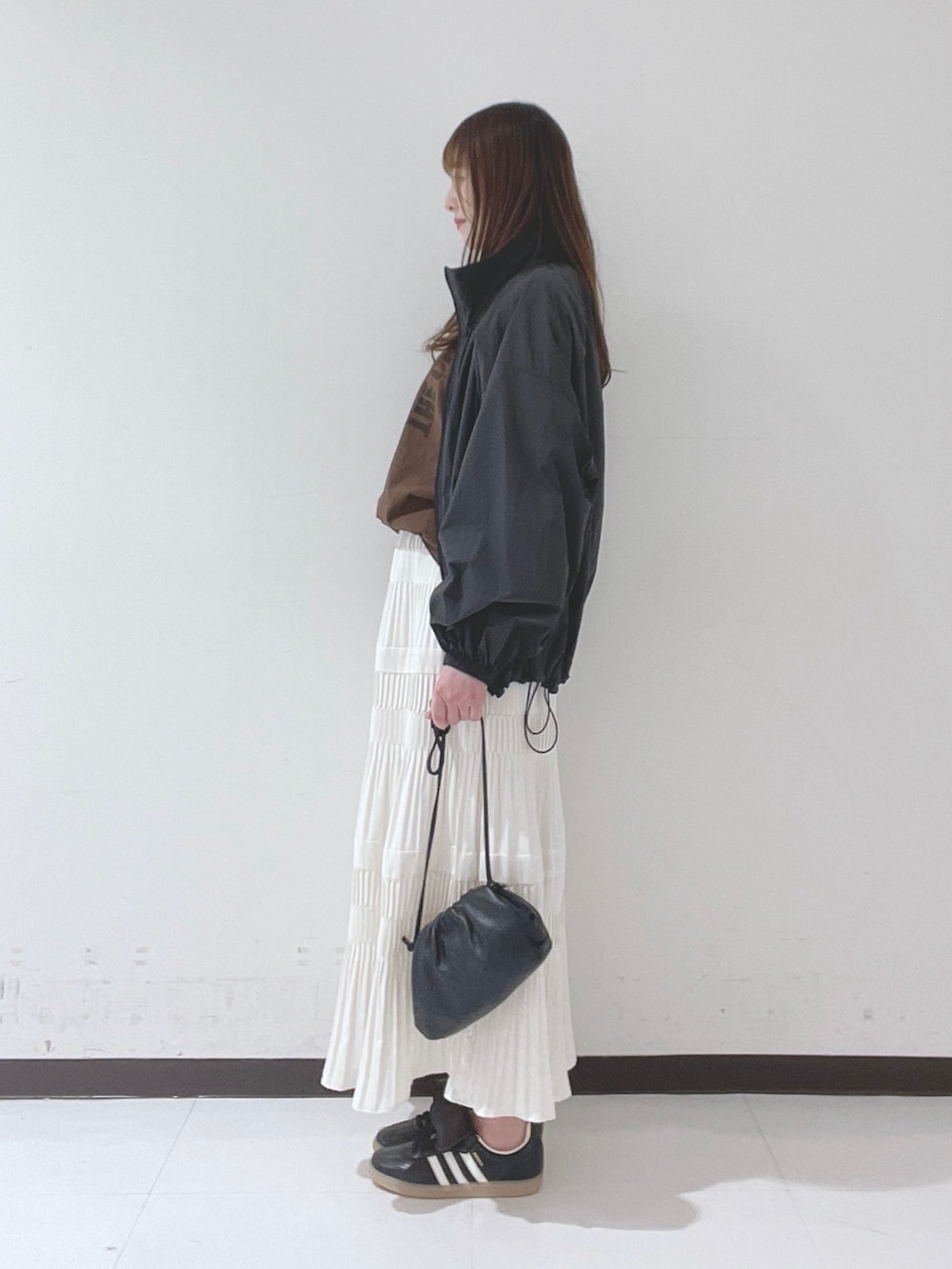 カジュアルになりがちなナイロンブルゾンですが、裾のドローコードで丸っこいシルエットに変えられて可愛らしくも着れます!
