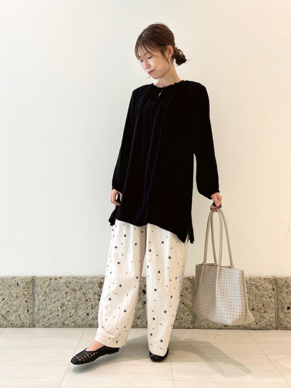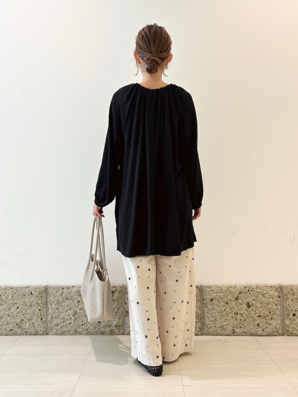 ツバメ刺繍イージーパンツ