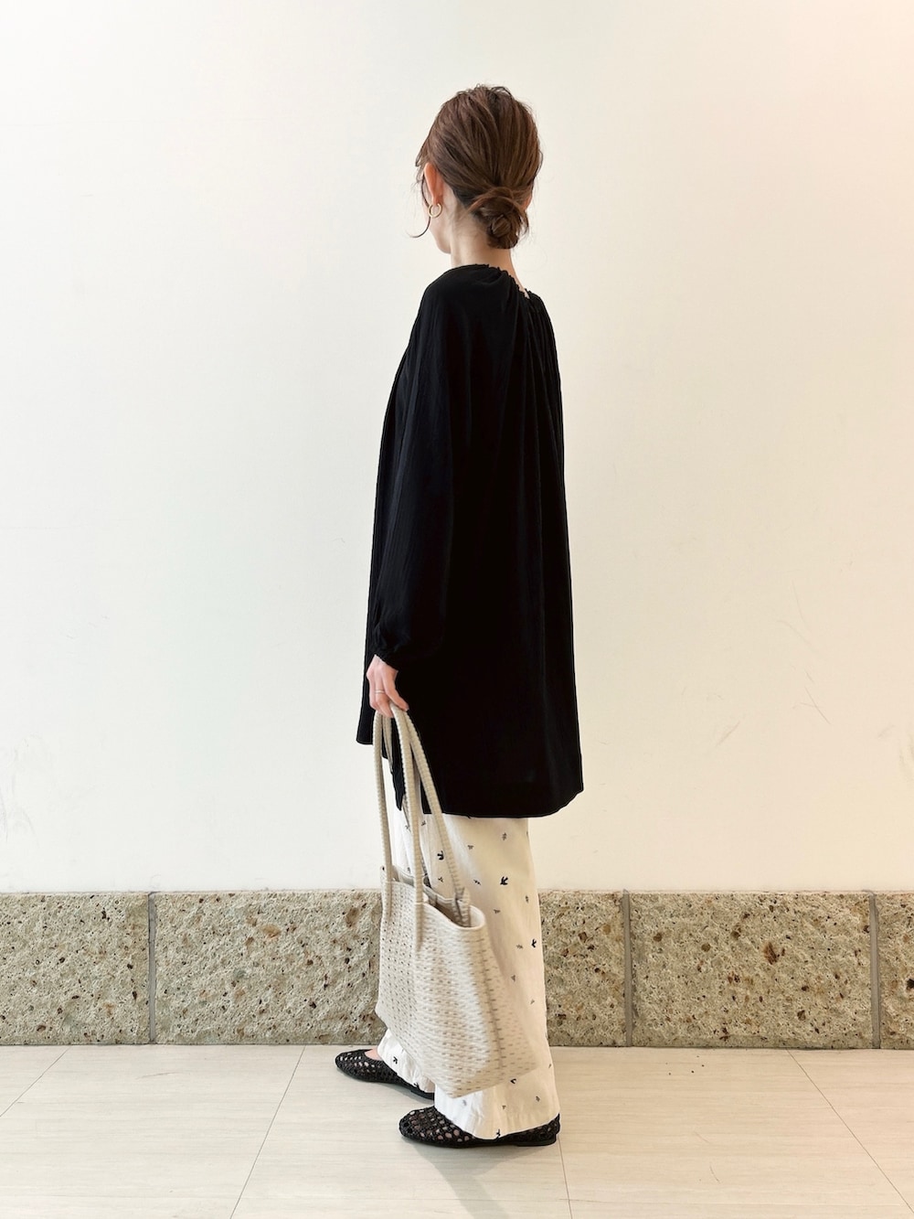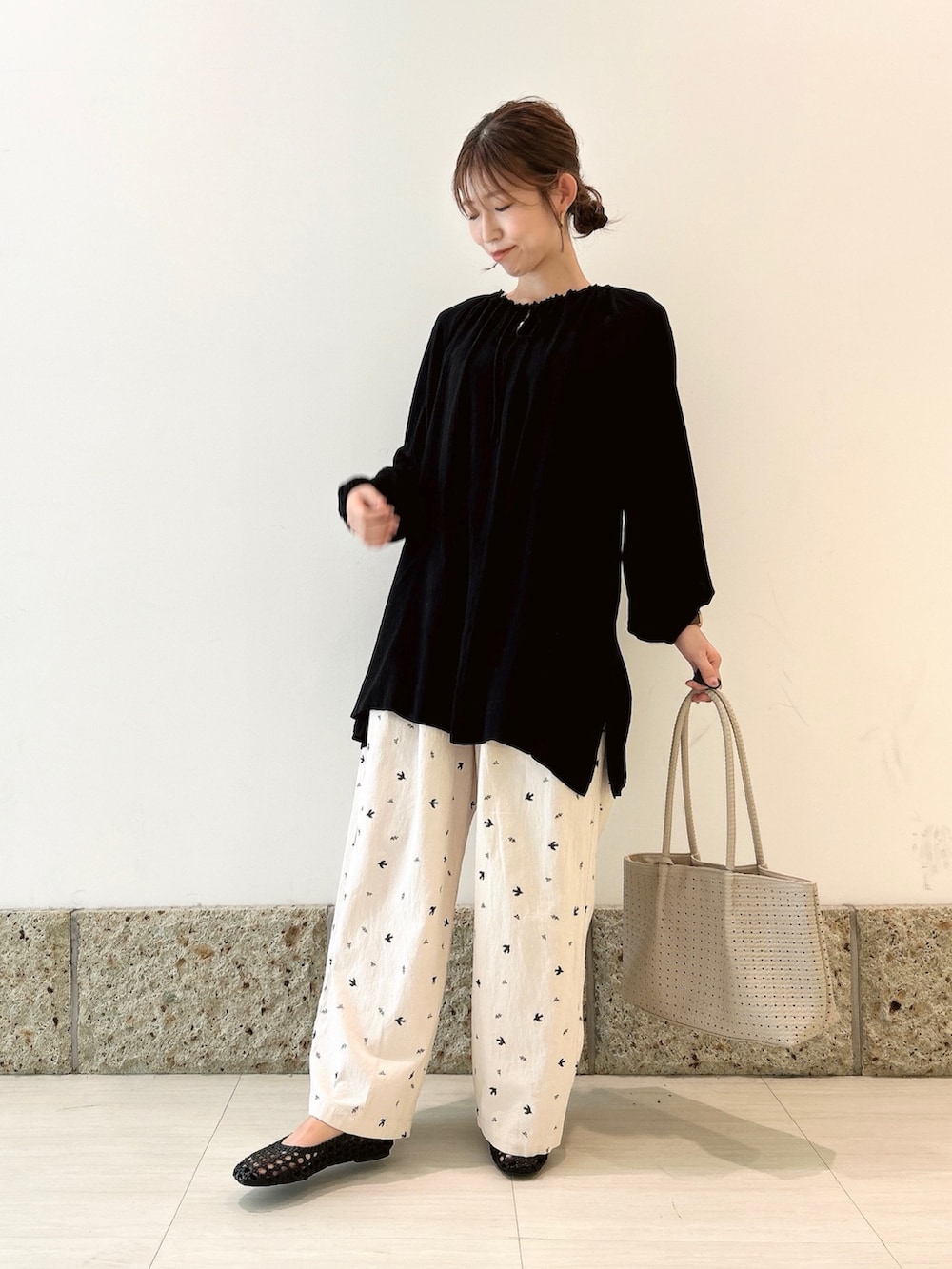 ボトムにはかぐれのワイドパンツを。