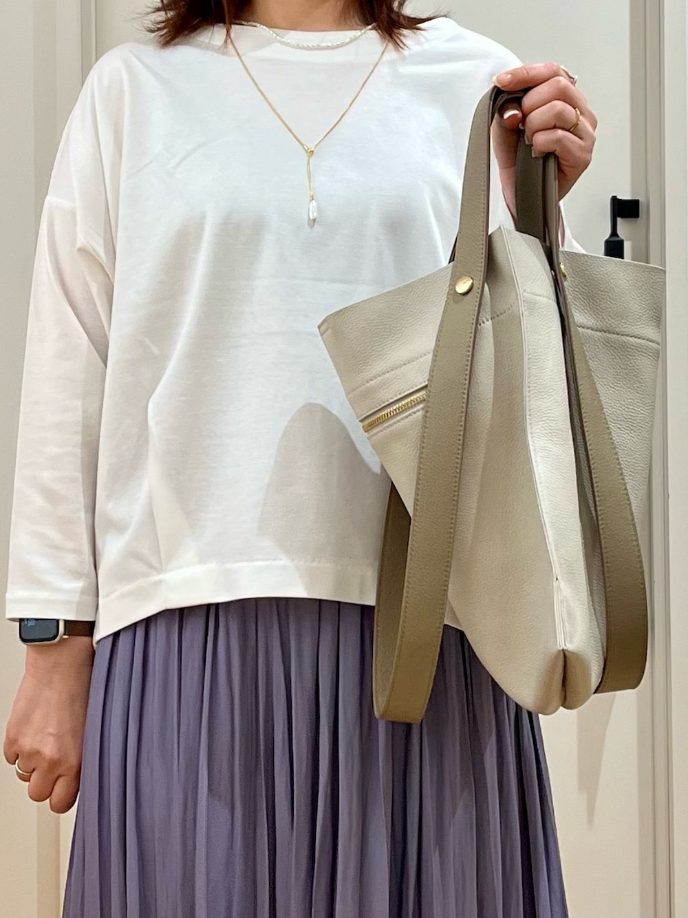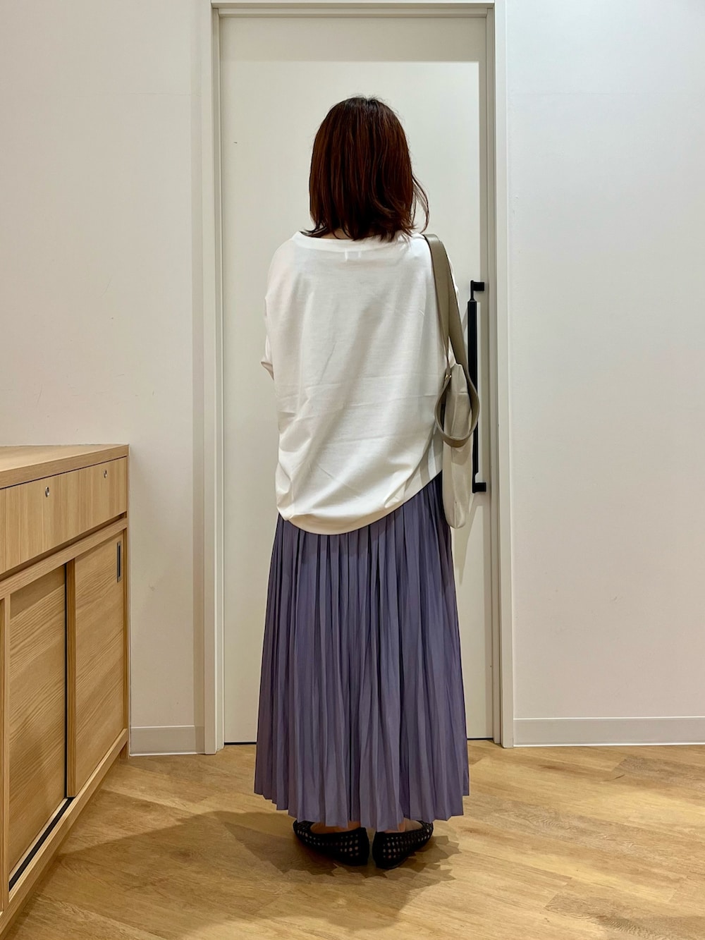 今回はプリーツスカートと合わせて、きれいめコーデに。