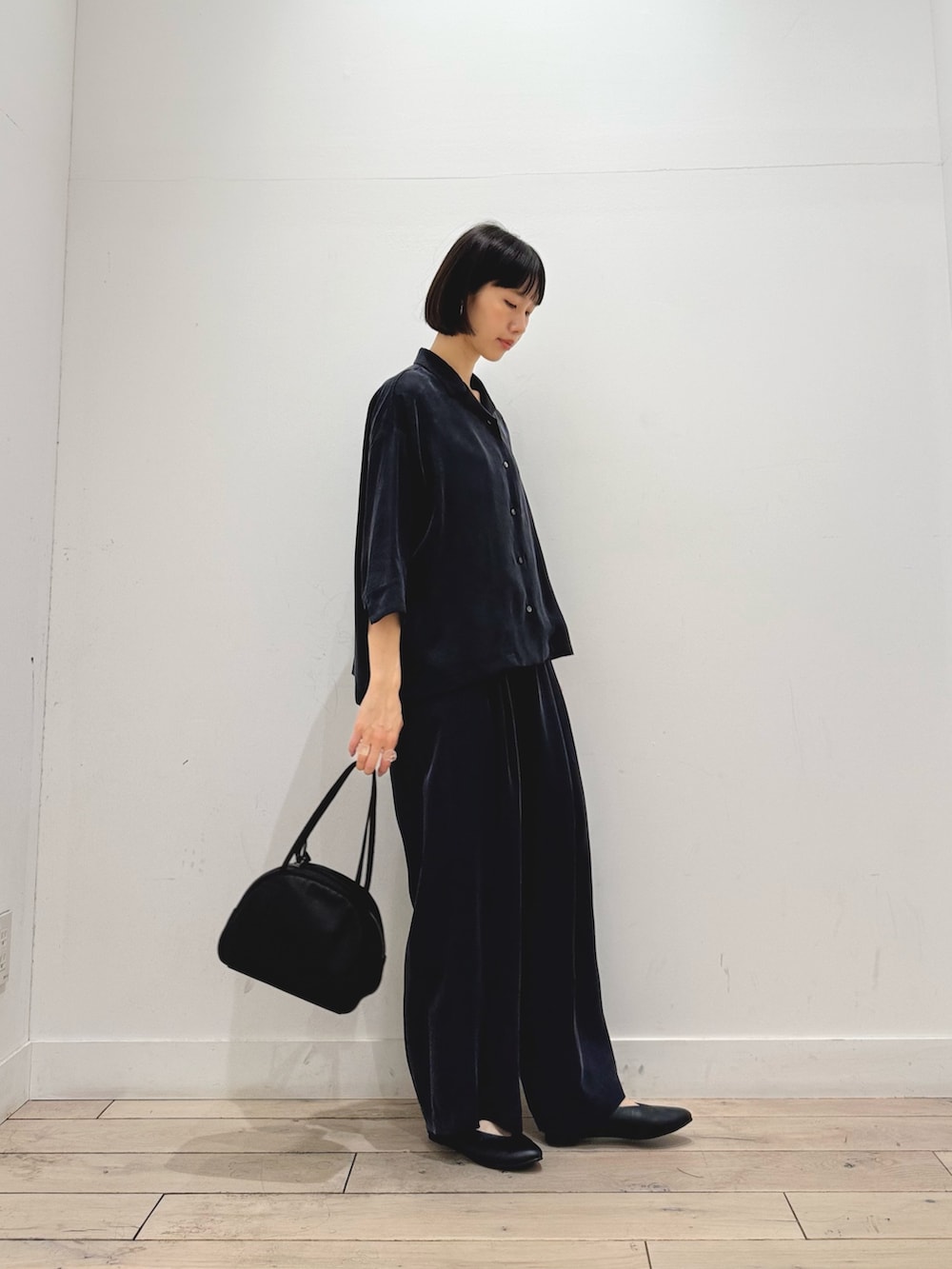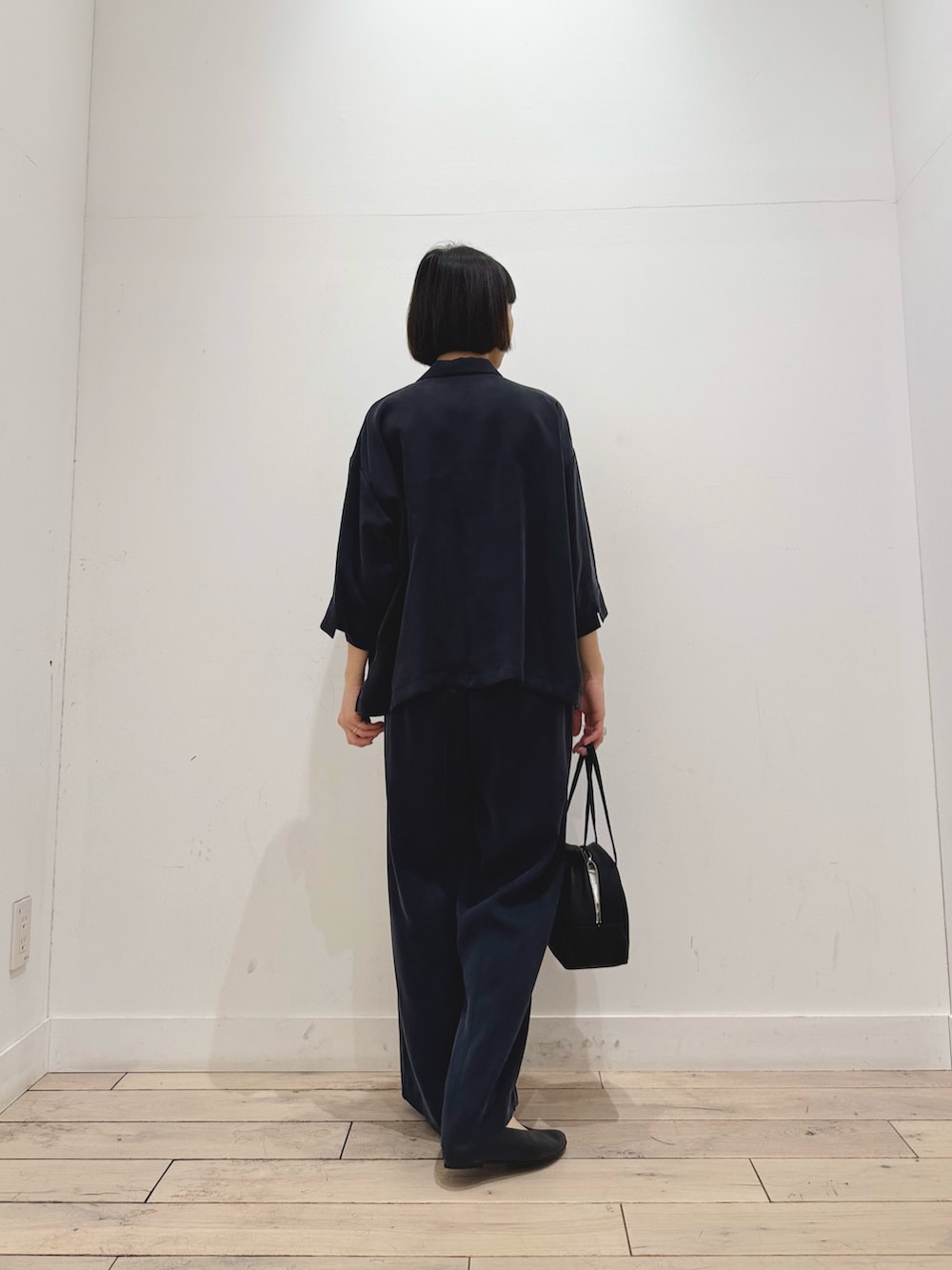 パンツはフロントに2タック入っている+落ち感のある素材なのでシルエットがとてもきれいです☺️(ウエスト1回折ってます。)