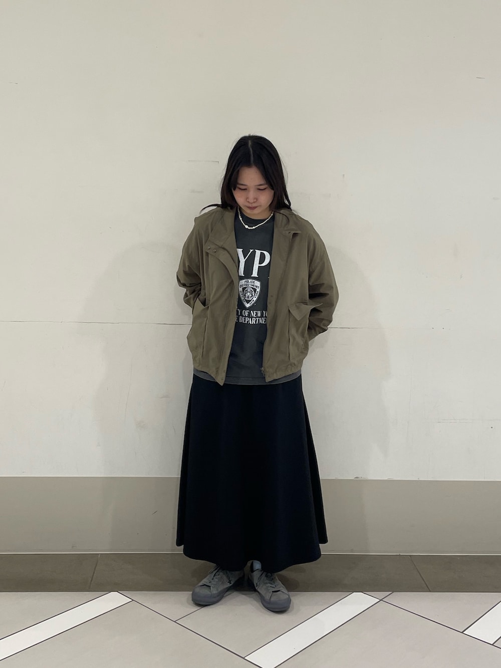 ボトムスをスカートにすることでバランスを取りました🧢