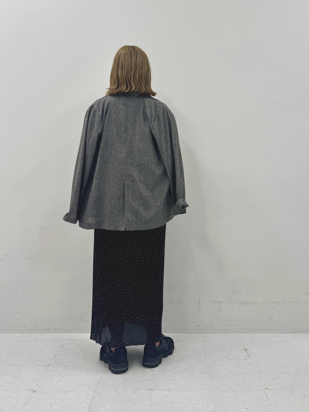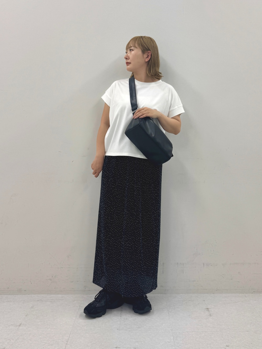 ドットのスカートをメインにコーディネート。
