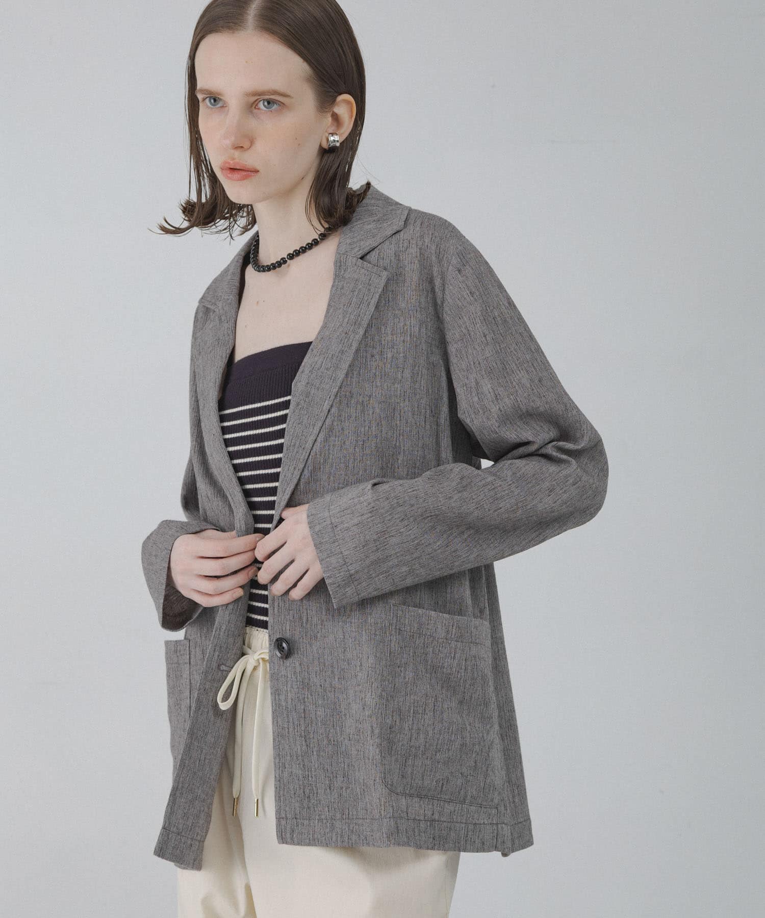 夏はTシャツ合わせが定番ですが、ジャケットを合わせるだけでこなれ感も◎
