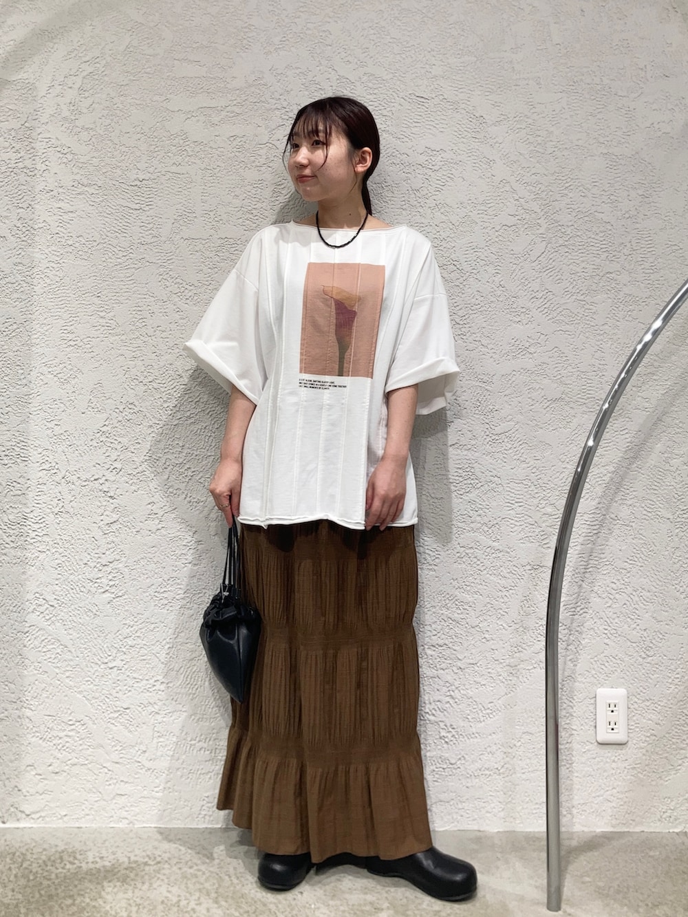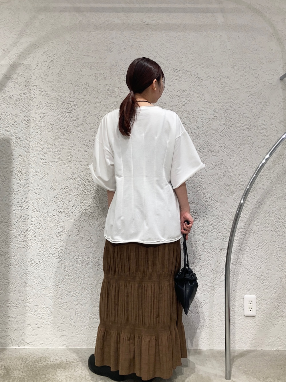 ピンタックでウエストのラインが綺麗に見えるTシャツは、お尻まで隠れる丈と肘まである袖丈が安心感のある着心地です☺️