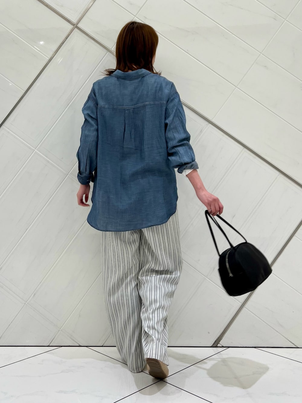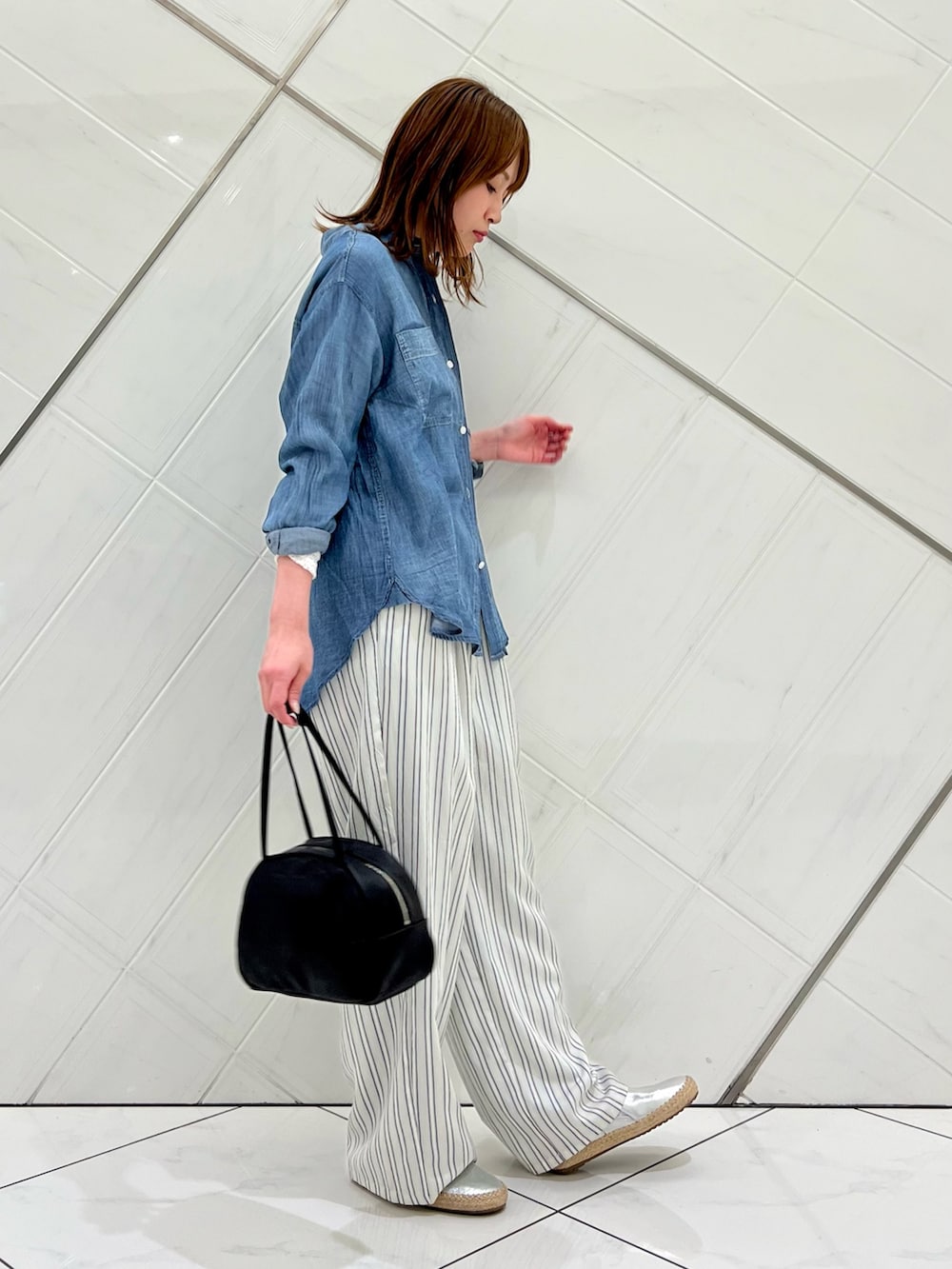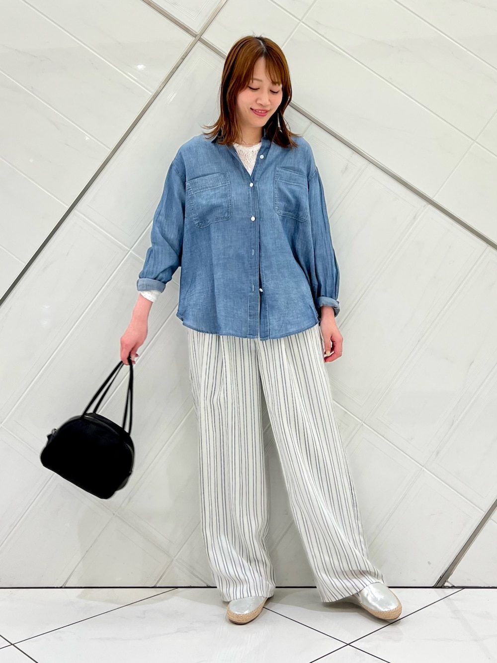 したシルエットながらストライプ柄が縦のライン