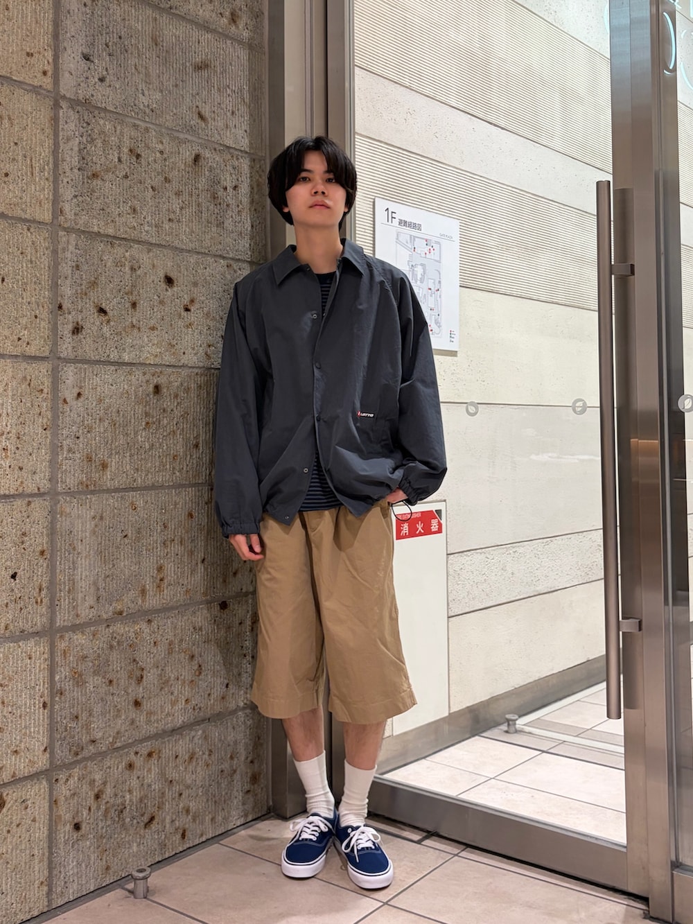 ショーツ×コーチジャケットの組み合わせは着れる時期が短いので今のうちが楽しみ時です