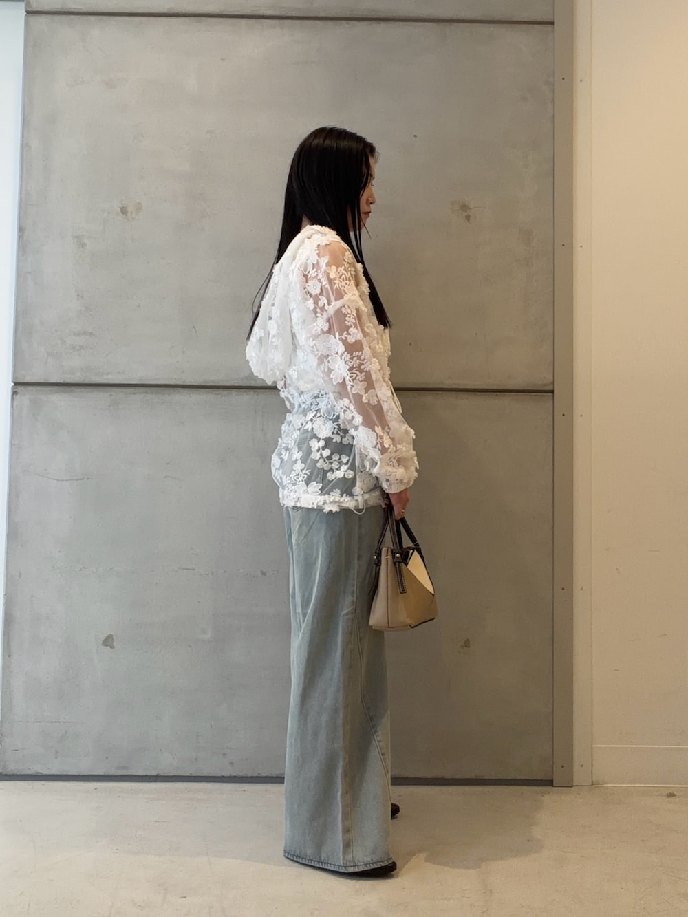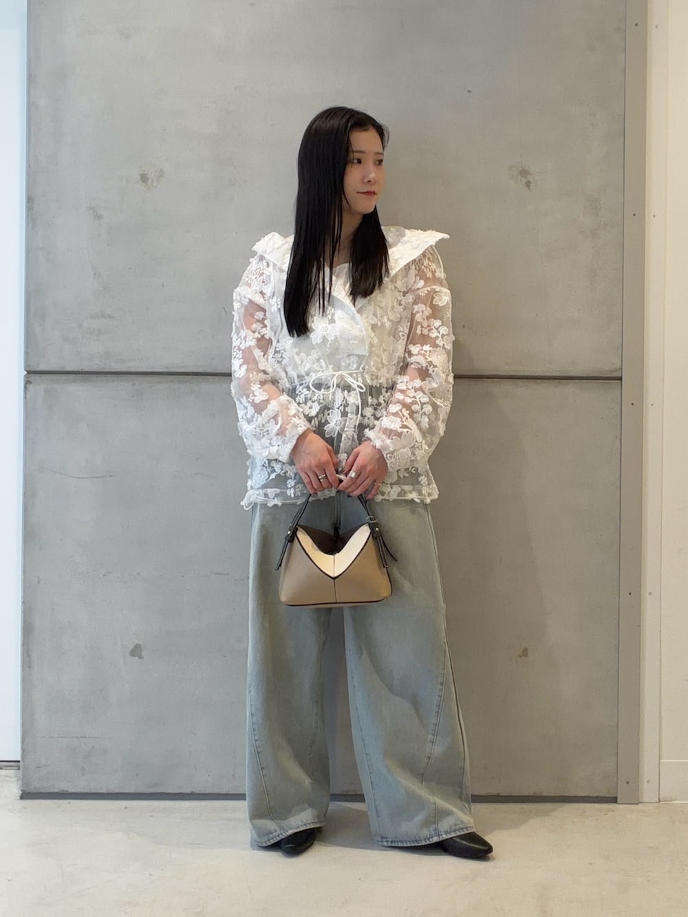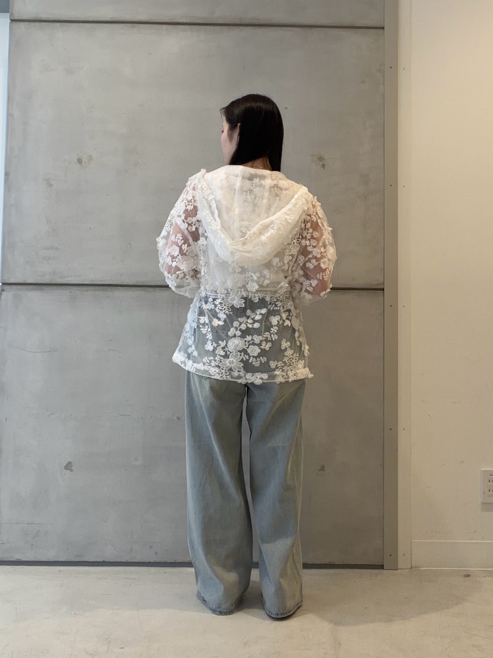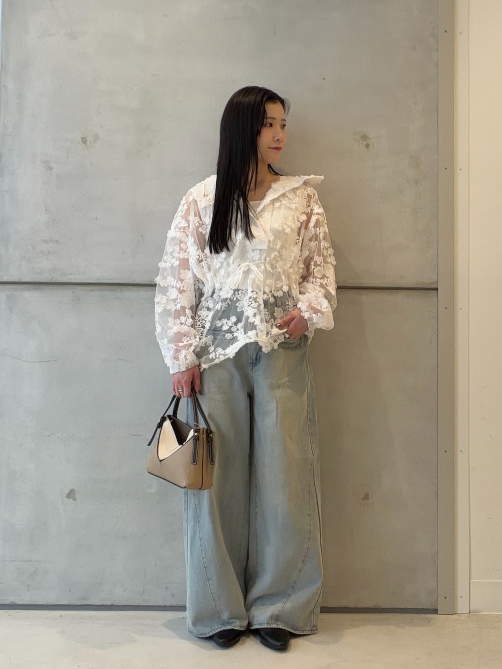 トップスは程よく肌見せのレース感が可愛く、