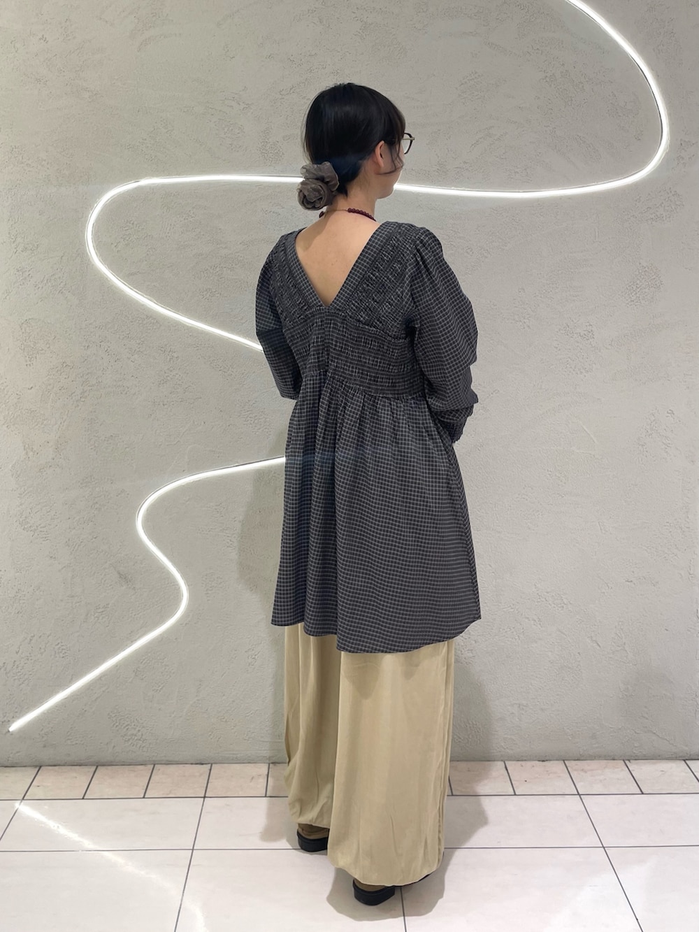 【2WAYシャーリングチェックミニワンピース】