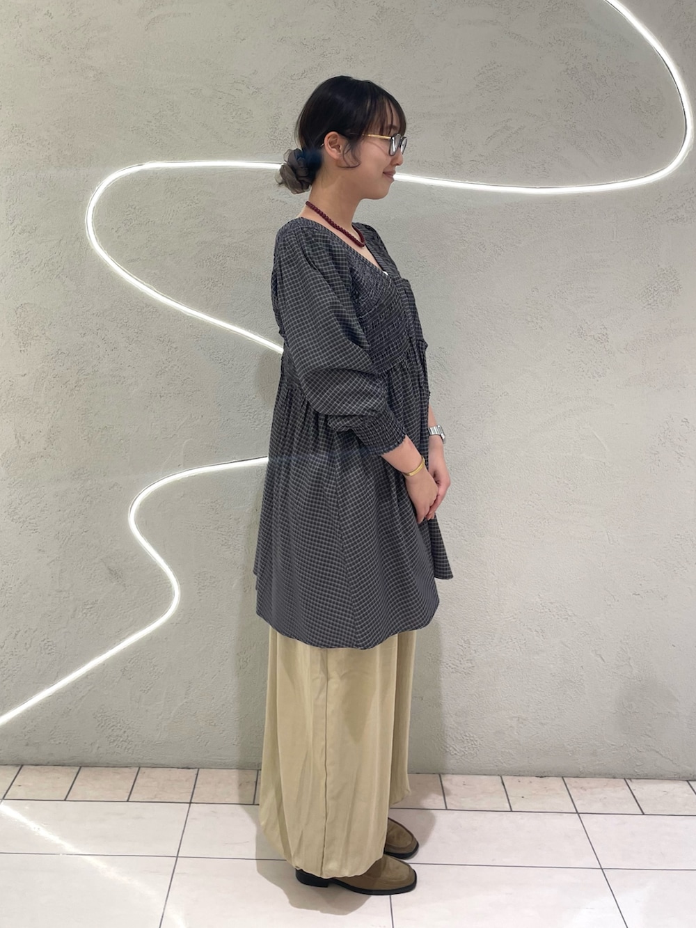 高身長さんはウエストで履くと、少し溜まりがスッキリめになるので、裾をたっぷりと溜めたい方は腰履きで試していただくのが◎